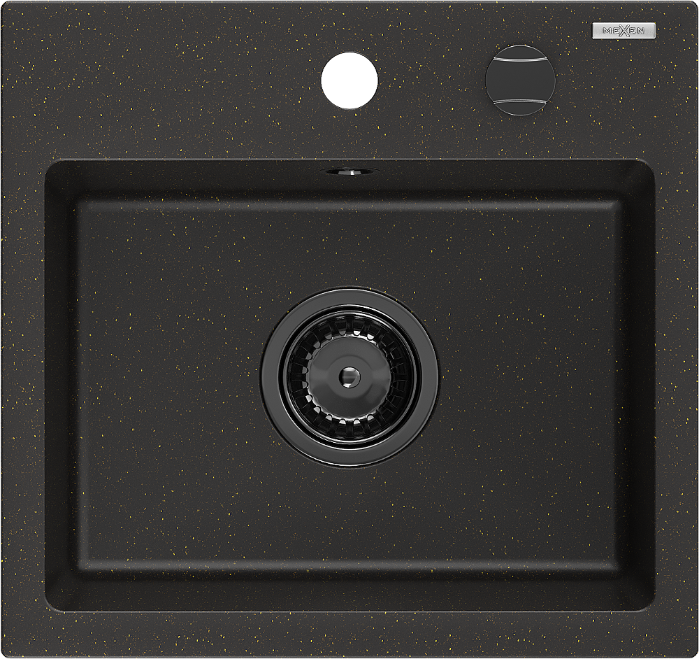 Mexen Milo 1 rekeszes gránit mosogató 435 x 410 mm, fekete/arany metál, fekete szifon - 6505441000-75-B