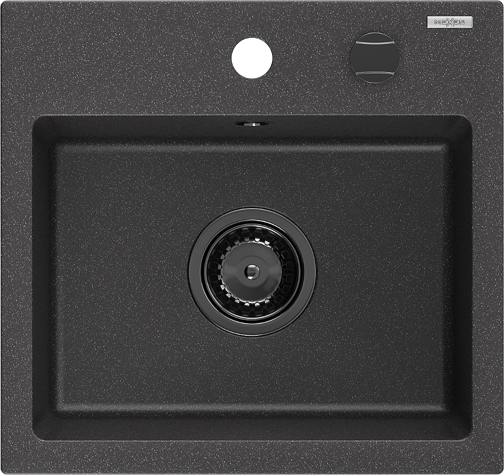 Mexen Milo egymedencés gránit mosogató 435 x 410 mm, fekete pöttyös, fekete szifon - 6505441000-76-B