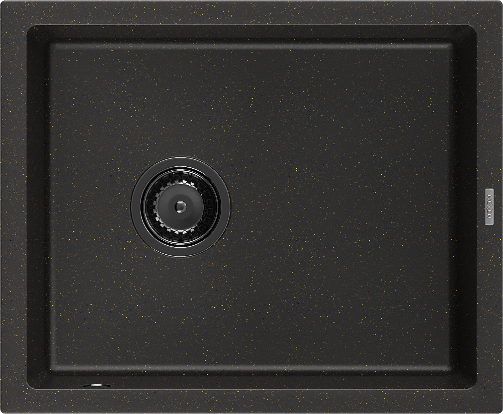 Mexen Pedro gránit mosogató 1-medencés 560 x 460 mm, fekete/arany metál, fekete szifon - 6508561000-75-B