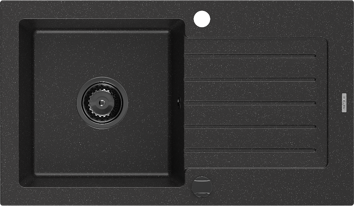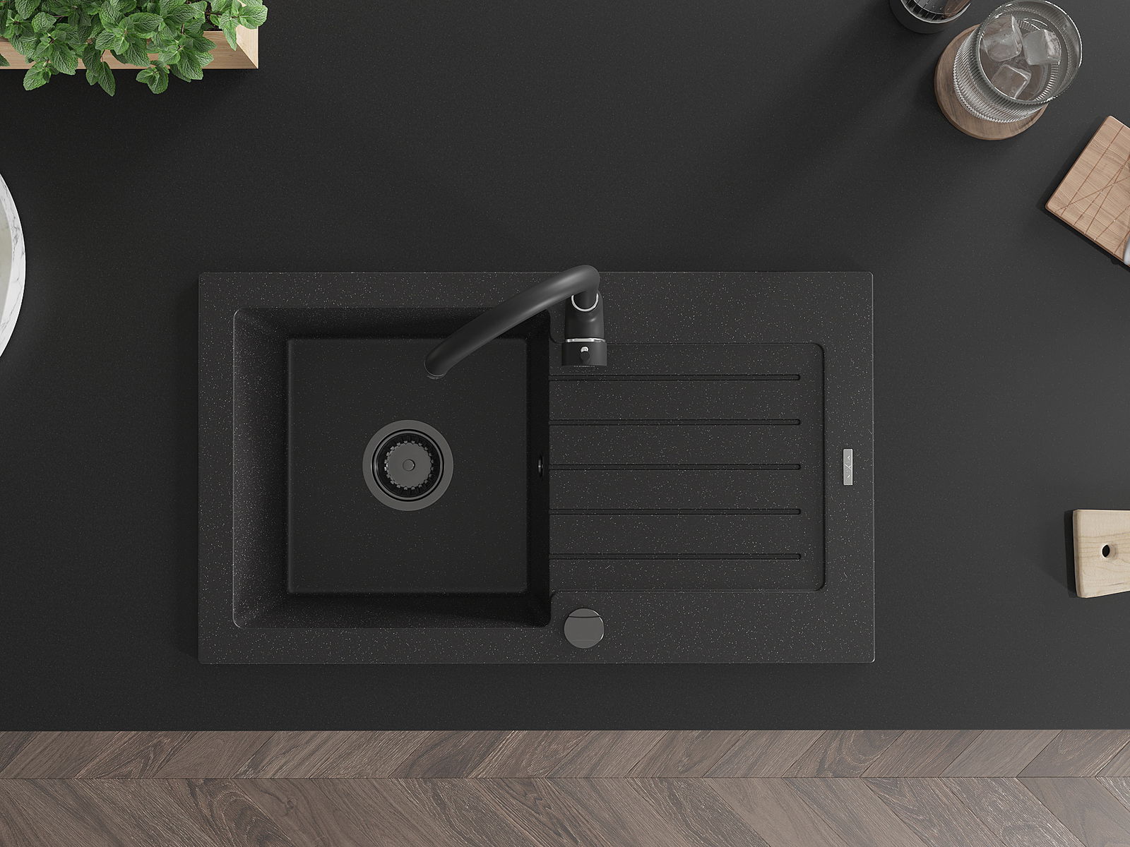 Mexen Pablo 1-medencés gránit mosogató csepegtetővel 752 x 436 mm, fekete/ezüst metál, fekete szifon - 6510751010-73-B
