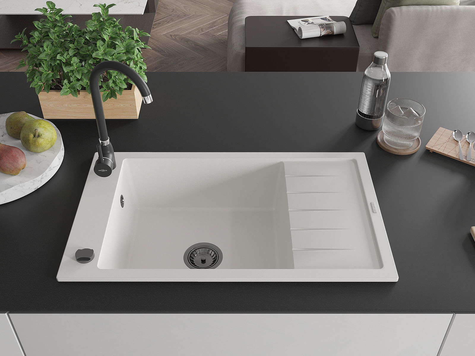 A mosogató kiváló minőségű gránitból készül. Ez egy elegáns és mindenekelőtt minden konyhához praktikus kiegészítés, stílusától függetlenül. A kiváló minőségű és a gránit tartósság biztosítja a sok éves használatát.