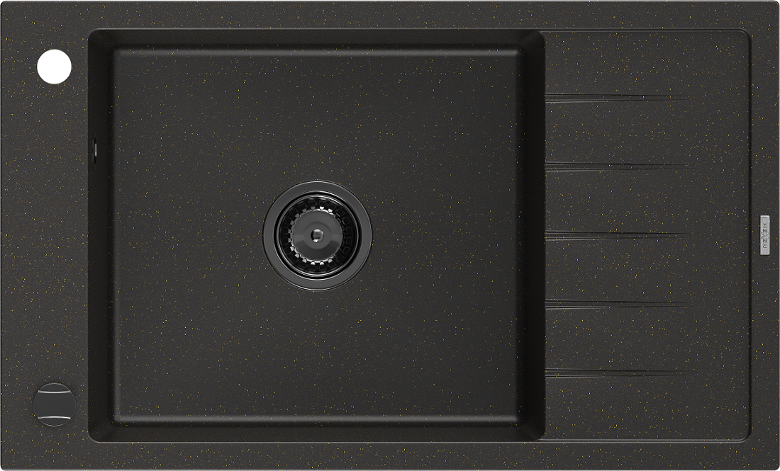 Mexen Elias egymedencés gránit mosogató csepegtetővel 795 x 480 mm, fekete/arany metál, fekete szifon - 6511791005-75-B