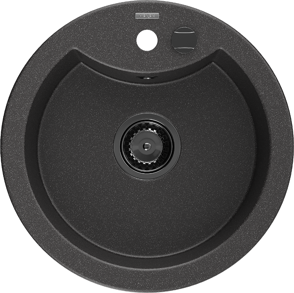 Mexen Diego gránit egyrekeszes mosogató 488 x 480 mm, fekete pöttyös, fekete szifon - 6512481000-76-B