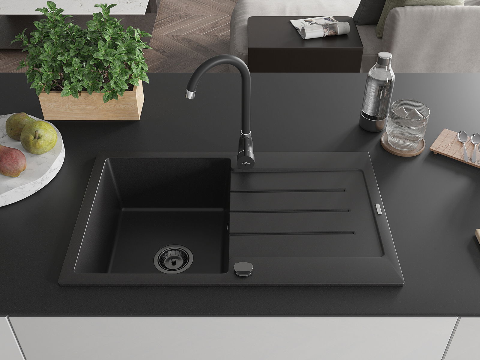 A mosogató kiváló minőségű gránitból készül. Ez egy elegáns és mindenekelőtt minden konyhához praktikus kiegészítés, stílusától függetlenül. A kiváló minőségű és a gránit tartósság biztosítja a sok éves használatát.