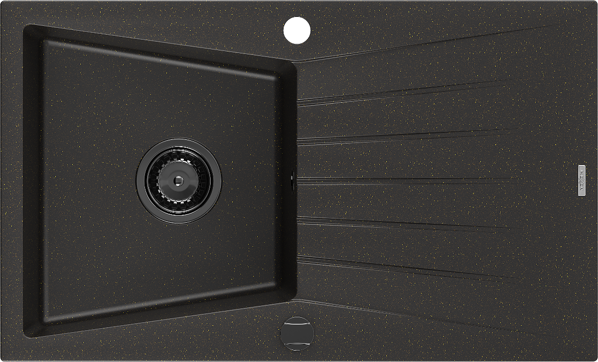 Mexen Cesar gránit mosogató 1-medencés lefolyóval 775 x 470 mm, fekete/arany metál, fekete szifon - 6514771010-75-B