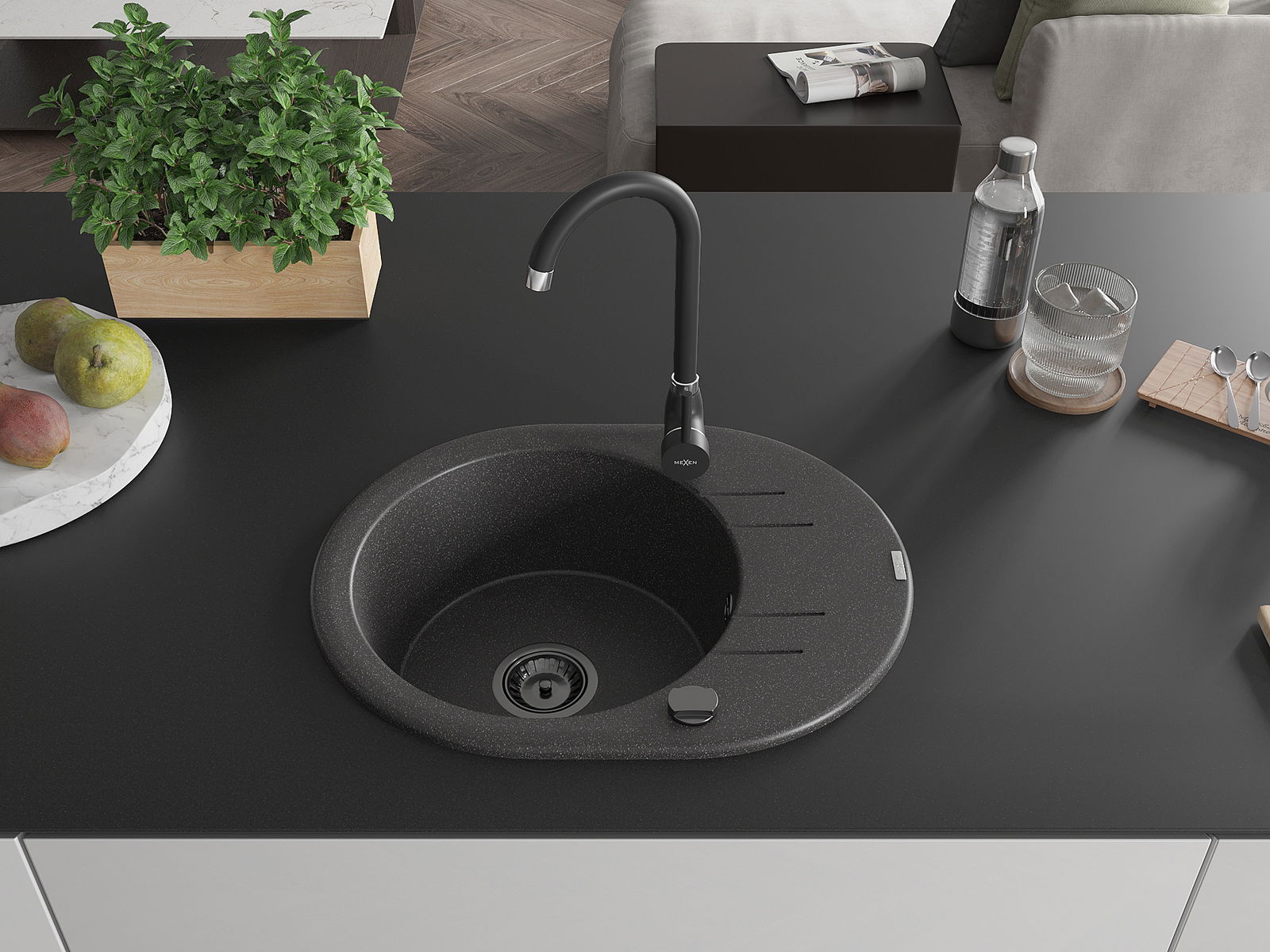A mosogató kiváló minőségű gránitból készül. Ez egy elegáns és mindenekelőtt minden konyhához praktikus kiegészítés, stílusától függetlenül. A kiváló minőségű és a gránit tartósság biztosítja a sok éves használatát.
