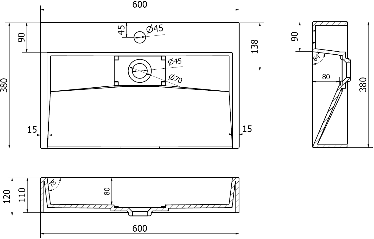 Mexen Ava munkalapra szerelhető mosdókagyló konglomerátból 1/O 60 x 38 cm, fekete - 23016071