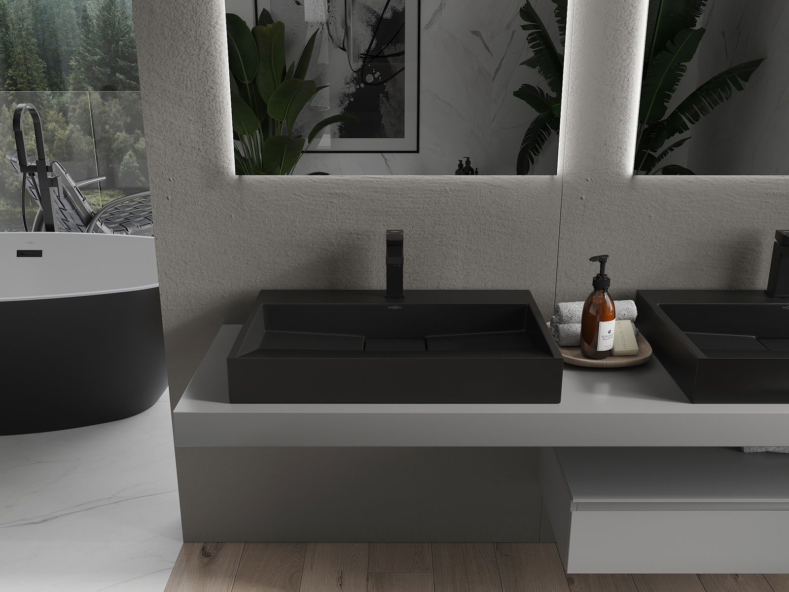 Mexen Ava pultra helyezhető mosdó konglomerátumból 1/O 70 x 46 cm, fekete - 23017071