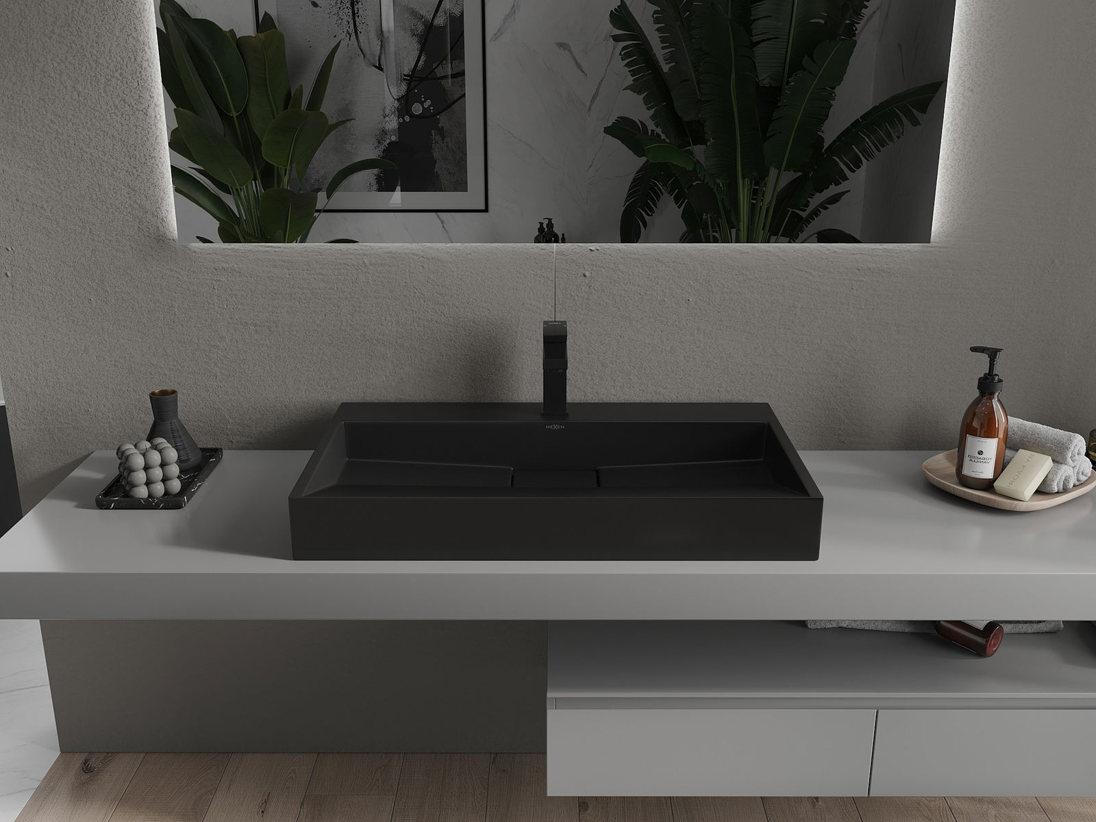 Mexen Ava konglomerátum pultra szerelhető mosdó 1/O 80 x 46 cm, fekete - 23018071