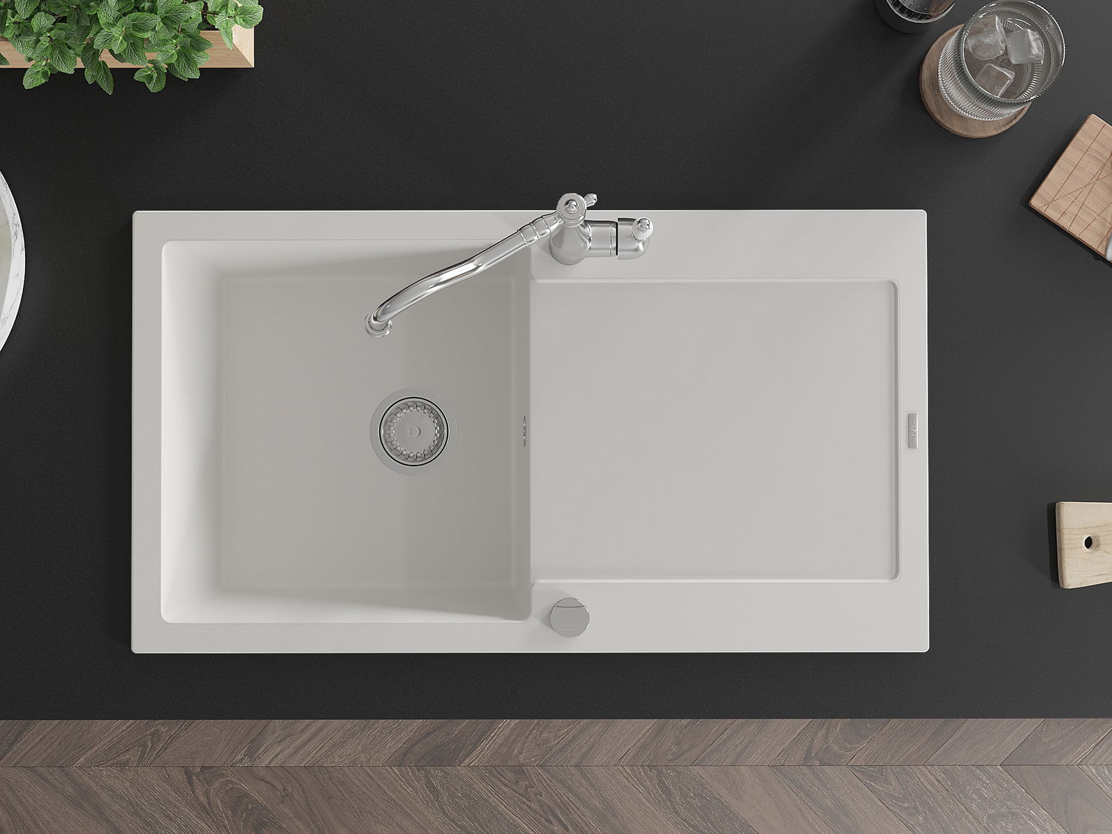 A mosogató felülete ellenáll a foltoknak és a elszíneződésnek, amelynek köszönhetően könnyű megtisztítani és hosszú ideig megtartja színét. Esztétikai és gyakorlatilag kiegészítve minden konyhát.