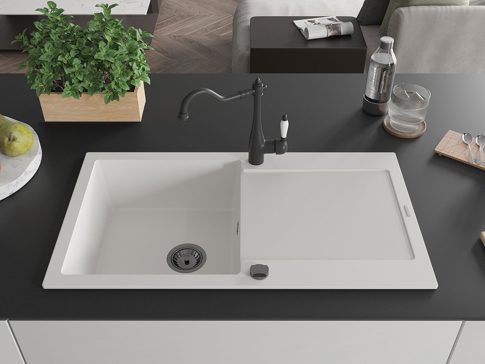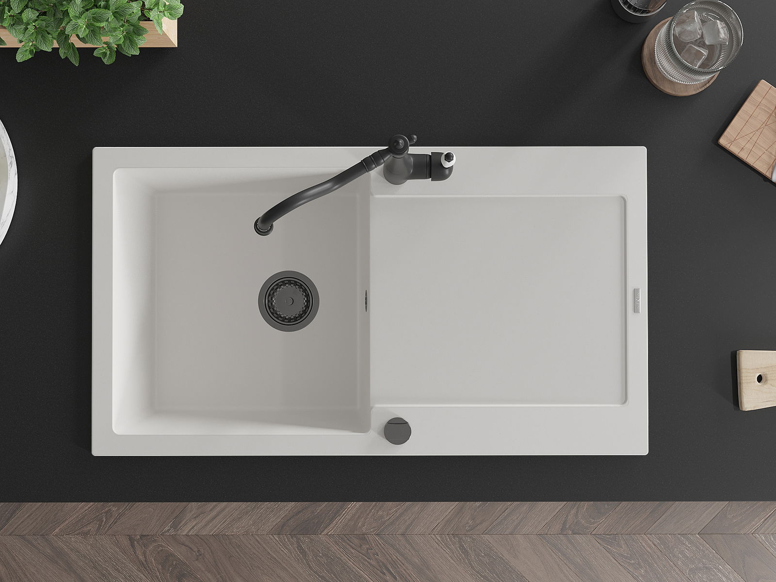 A mosogató magas minőségű gránitból készült. Elegáns, de mindenekelőtt praktikus kiegészítője minden konyhának, függetlenül annak stílusától. A gránit magas minősége és tartóssága hosszú távú használatot biztosít.