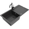 Mexen Leo egymedencés gránit mosogató csepegtetővel és Carla konyhai csappal, fekete/ezüst metál - 6501-73-670700-70-B