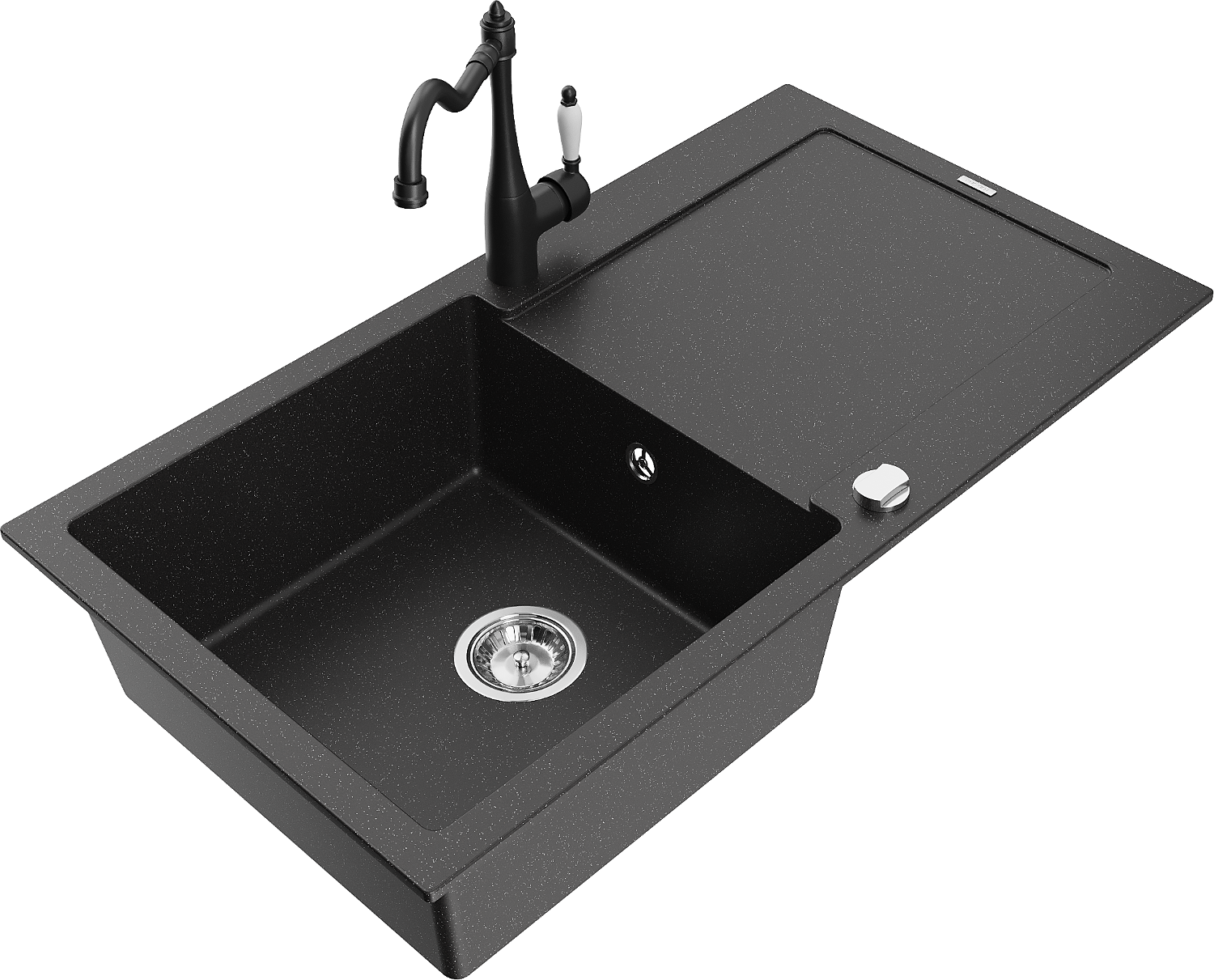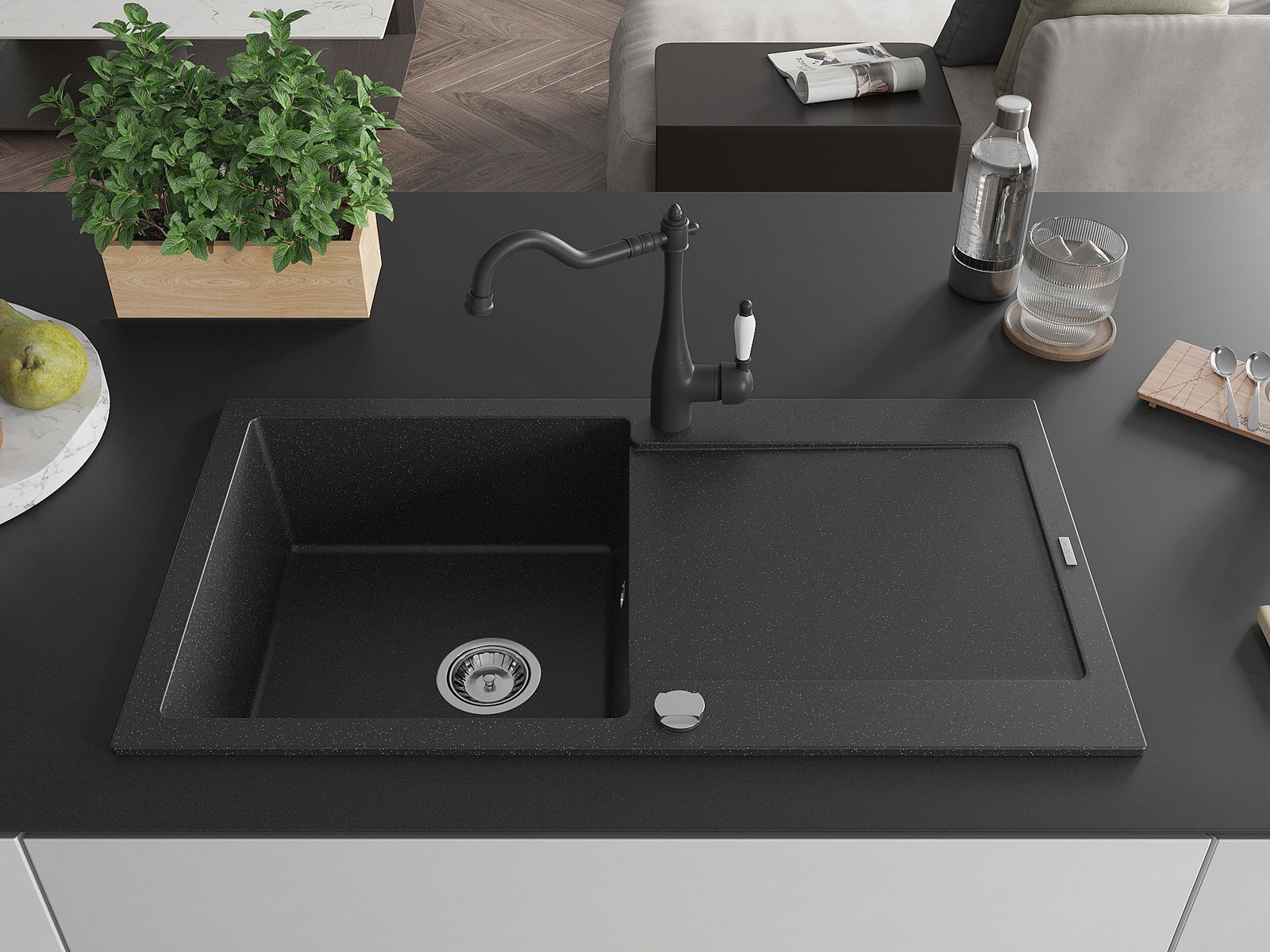 A mosogató magas minőségű gránitból készült. Elegáns, de mindenekelőtt praktikus kiegészítője minden konyhának, függetlenül annak stílusától. A gránit magas minősége és tartóssága hosszú távú használatot biztosít.