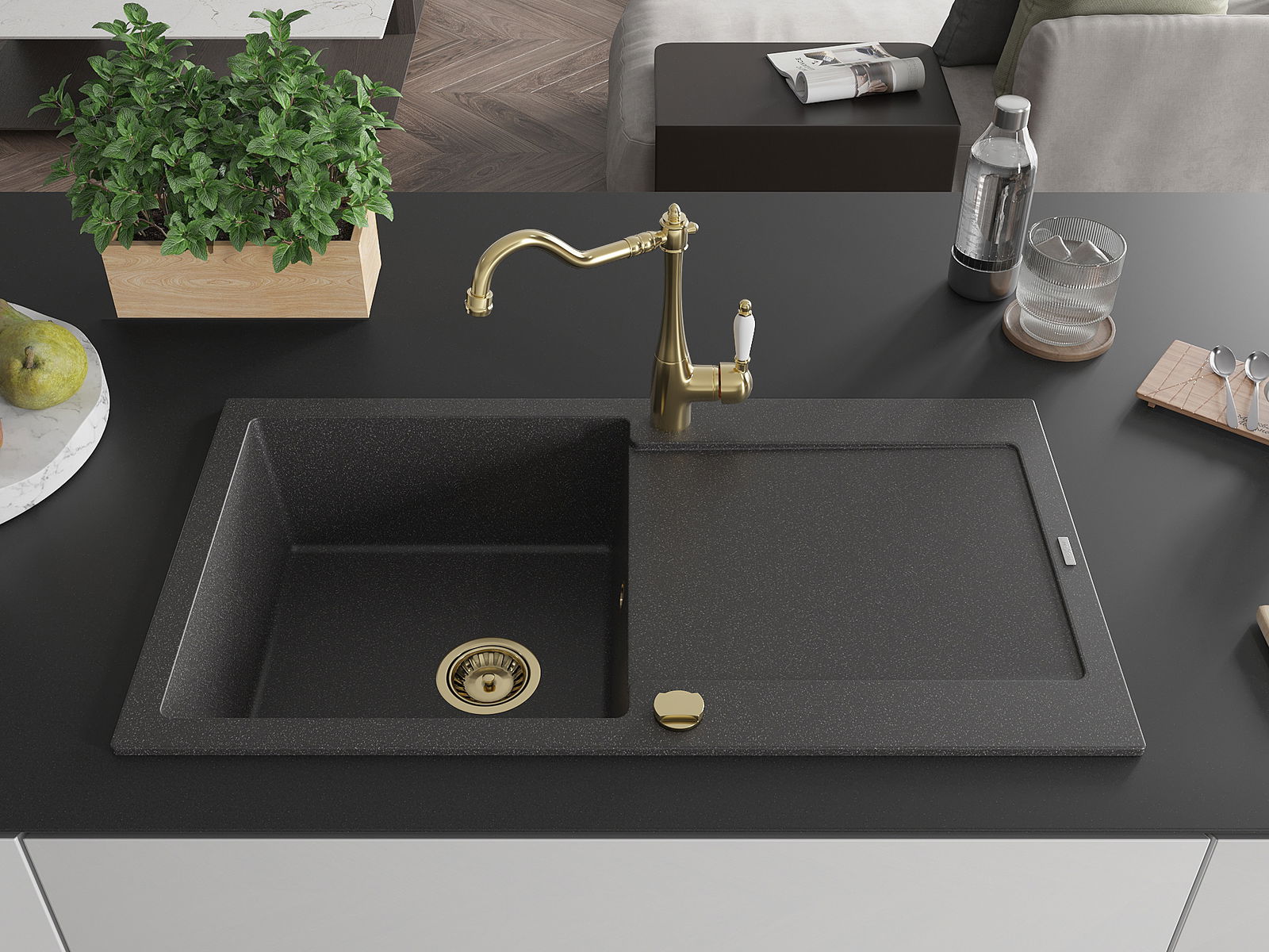 A mosogató kiváló minőségű gránitból készül. Ez egy elegáns és mindenekelőtt minden konyhához praktikus kiegészítés, stílusától függetlenül. A kiváló minőségű és a gránit tartósság biztosítja a sok éves használatát.