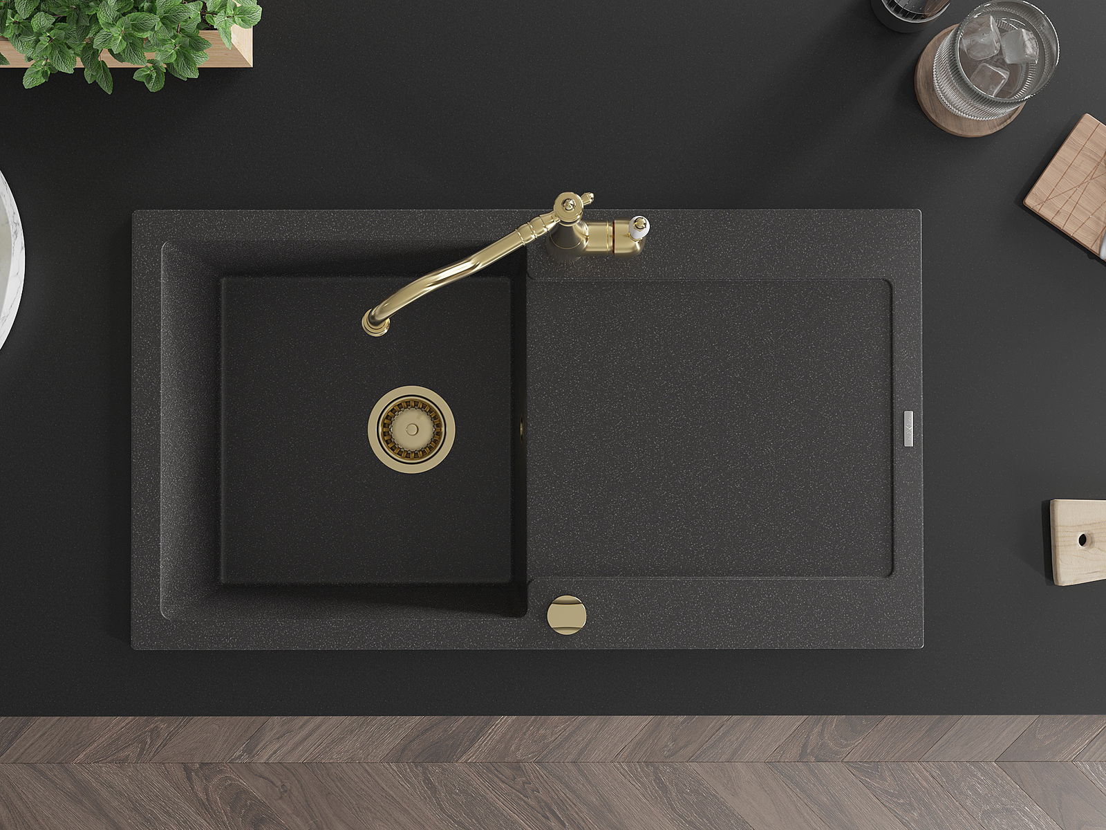 Mexen Leo 1-medencés gránit mosogató csepptálcával és Carla konyhai csapteleppel, fekete pöttyös - 6501-76-670700-50