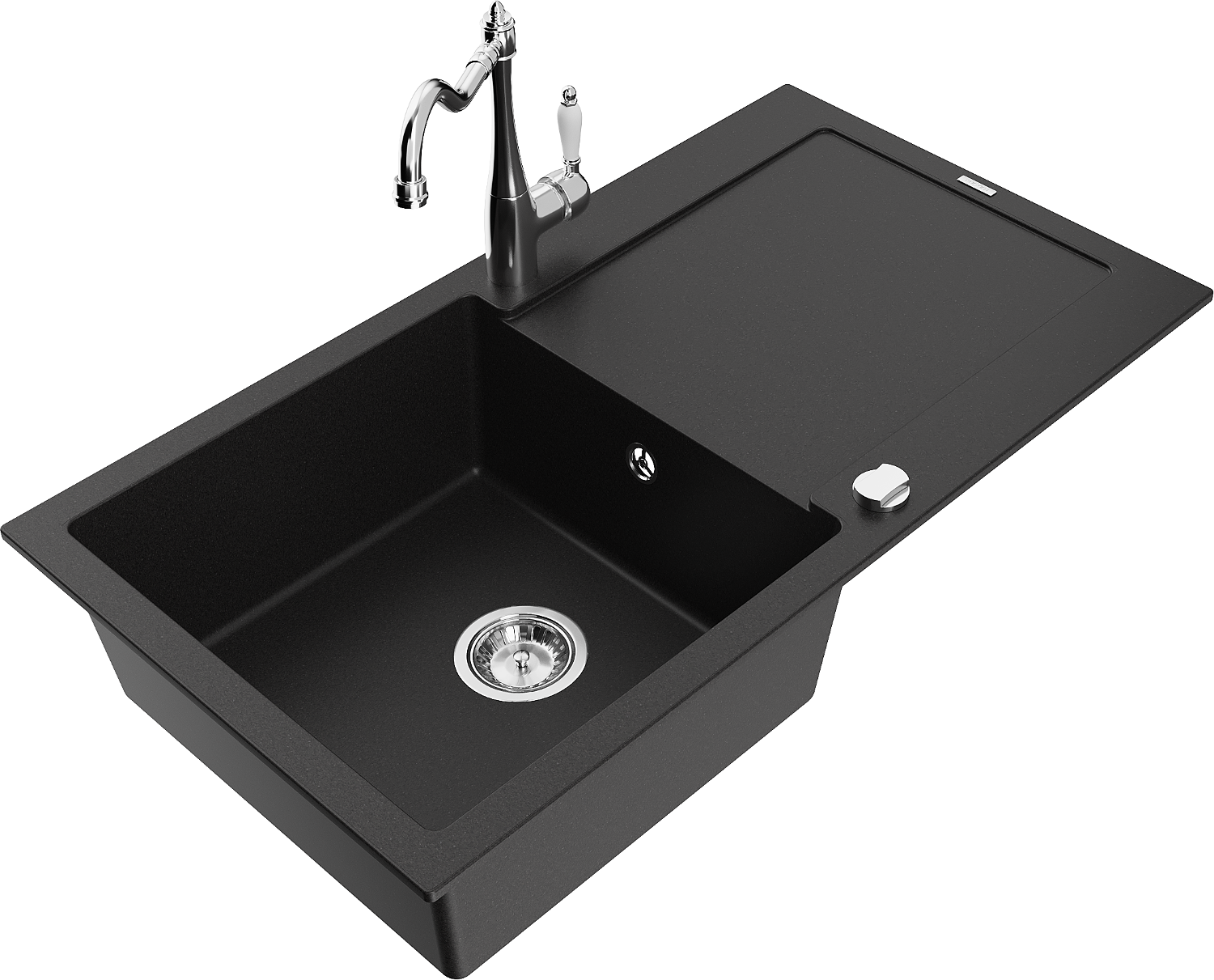 Mexen Leo egymedencés gránit mosogató csepegtetővel és Carla konyhai csappal, fekete - 6501-77-670700-00