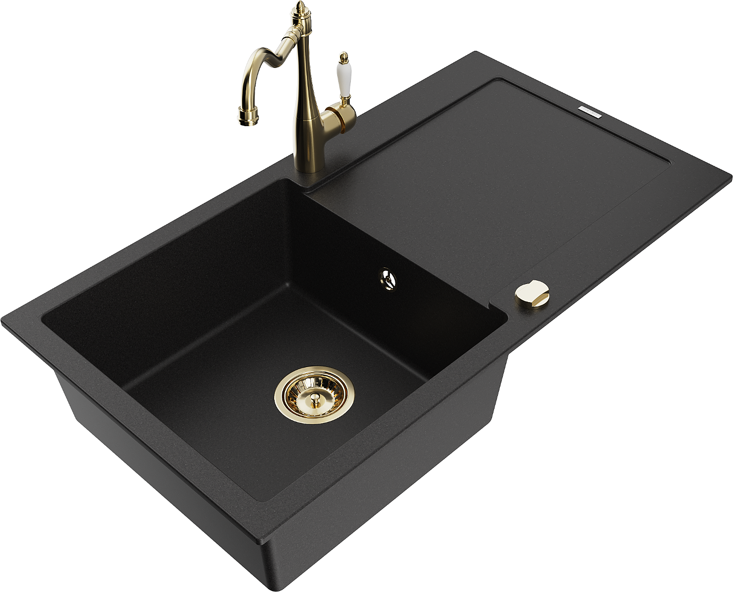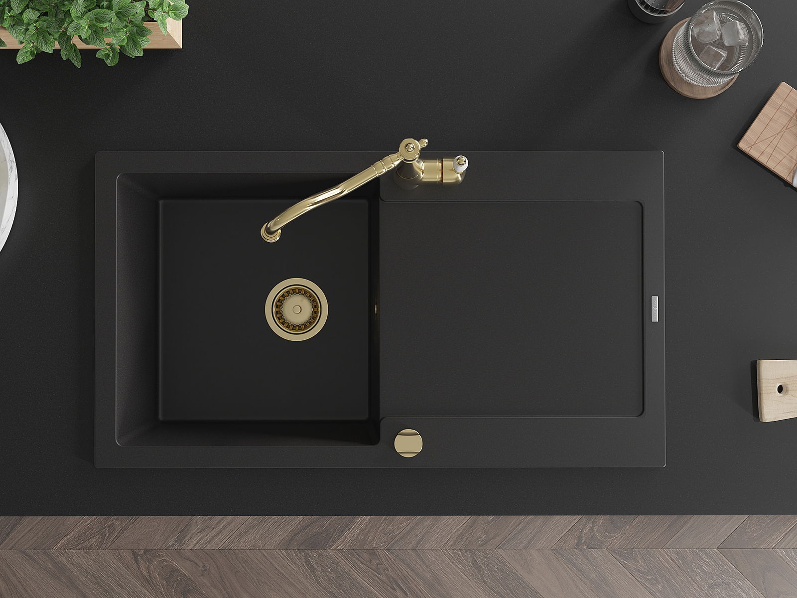 Mexen Leo egymedencés kétfunkciós gránit mosogató és Carla konyhai csaptelep, fekete - 6501-77-670700-50