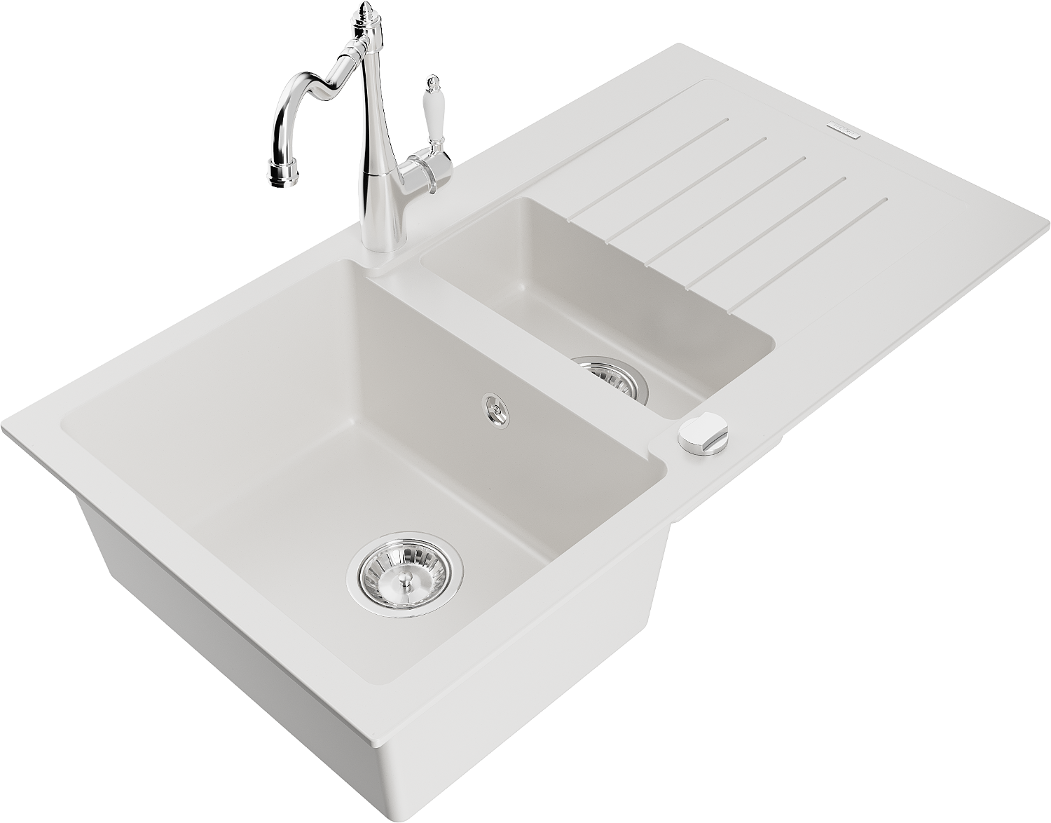 Mexen Matias gránit mosogató 1,5-medencés csepegtetővel és Carla konyhai csappal, fehér - 6502-20-670700-00