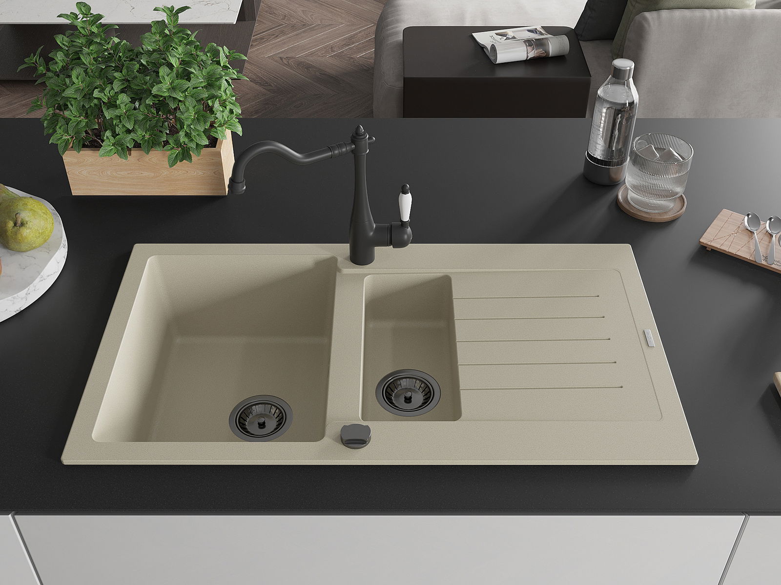 Mexen Matias 1,5 rekeszes, csepegtetős gránit mosogató Carla konyhai csapteleppel, bézs - 6502-69-670700-70