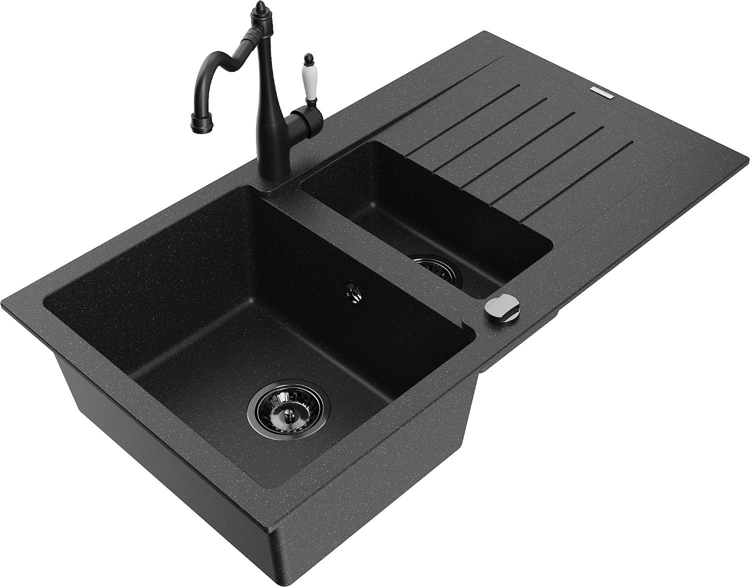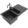 Mexen Matias 1,5 rekeszes gránit mosogató csepegtetővel és Carla konyhai csapteleppel, fekete/ezüst - 6502-73-670700-70-B