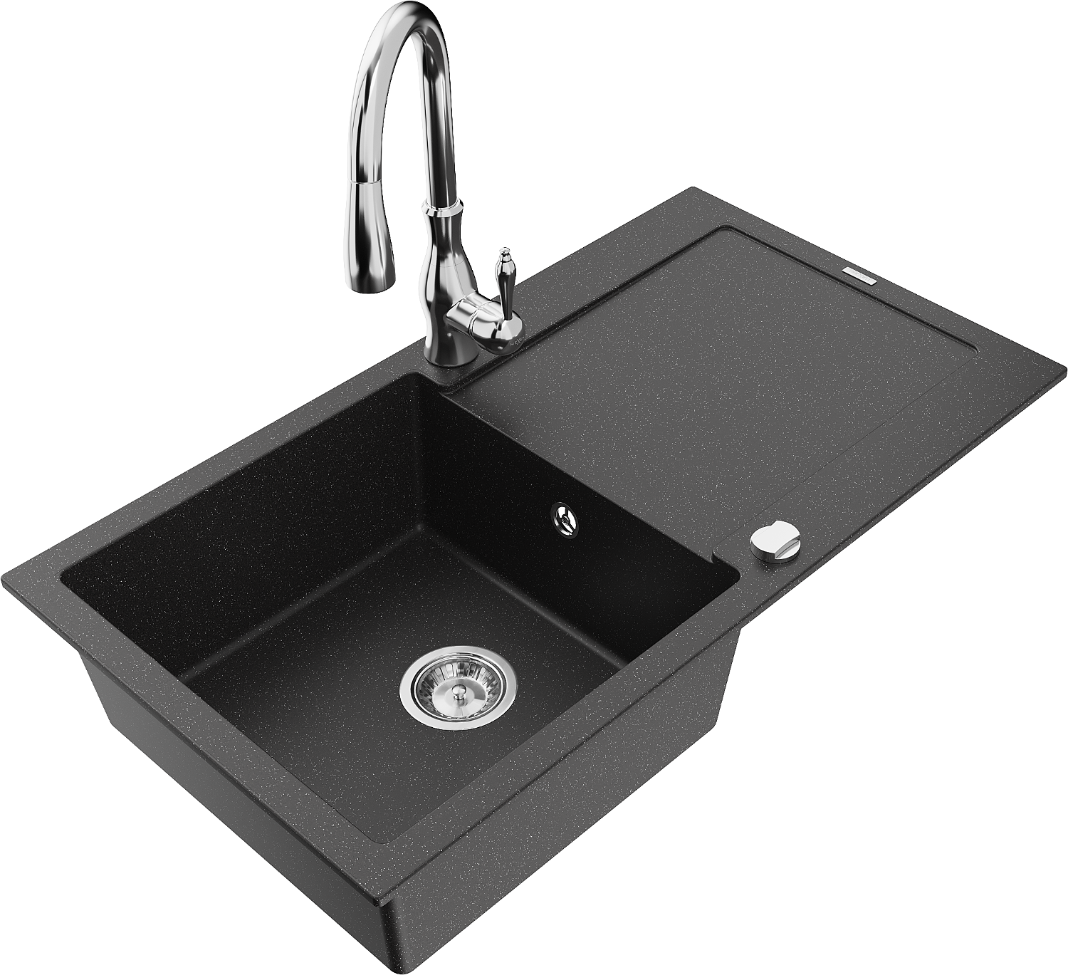 Mexen Leo 1-medencés gránit mosogató csepegtetővel és Savita konyhai csapteleppel, fekete/ezüst metál - 6501-73-672601-00