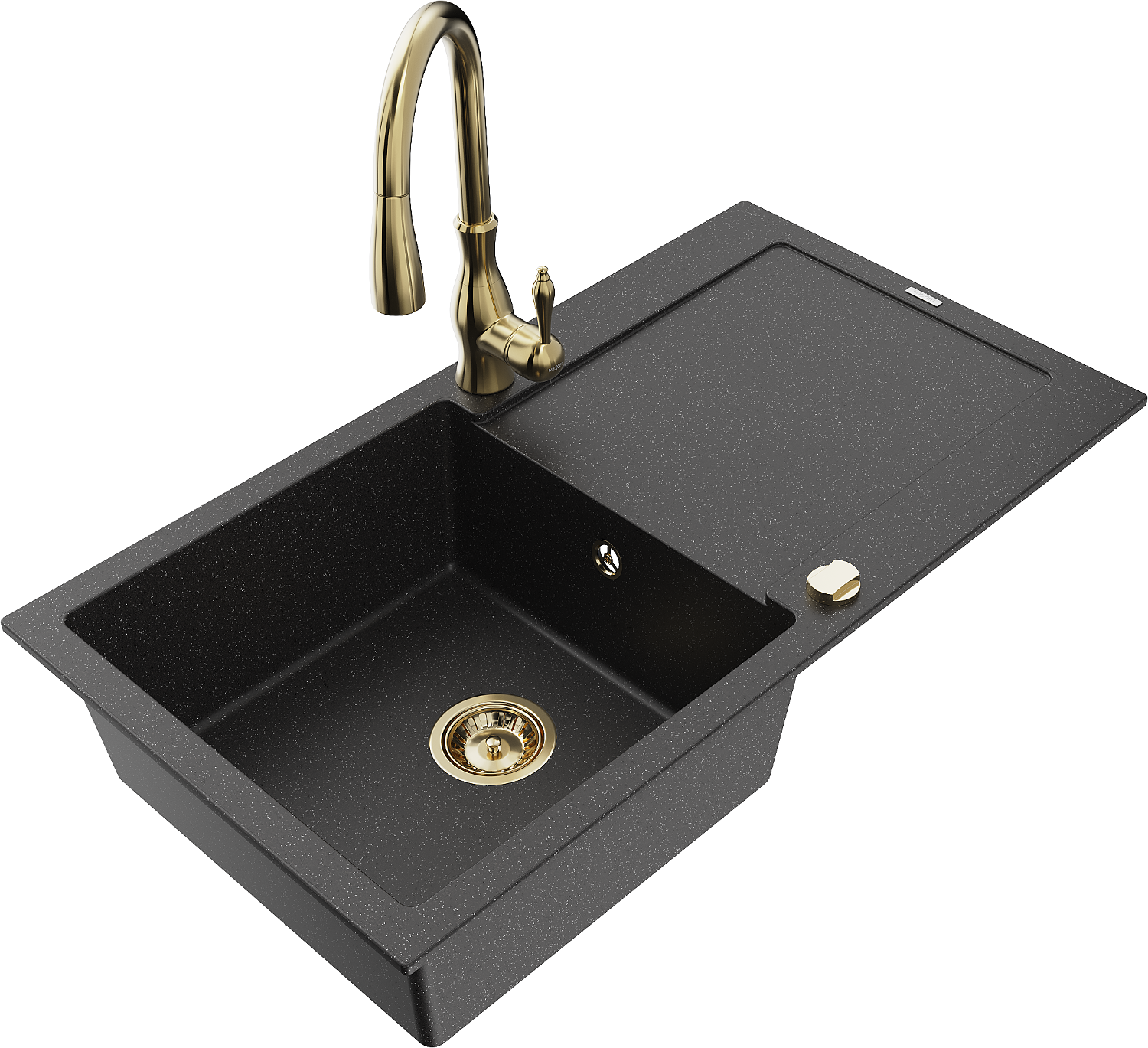 Mexen Leo 1 rekeszes gránit mosogató csepegtetővel és Savita konyhai csappal, fekete/ezüst metál - 6501-73-672601-50