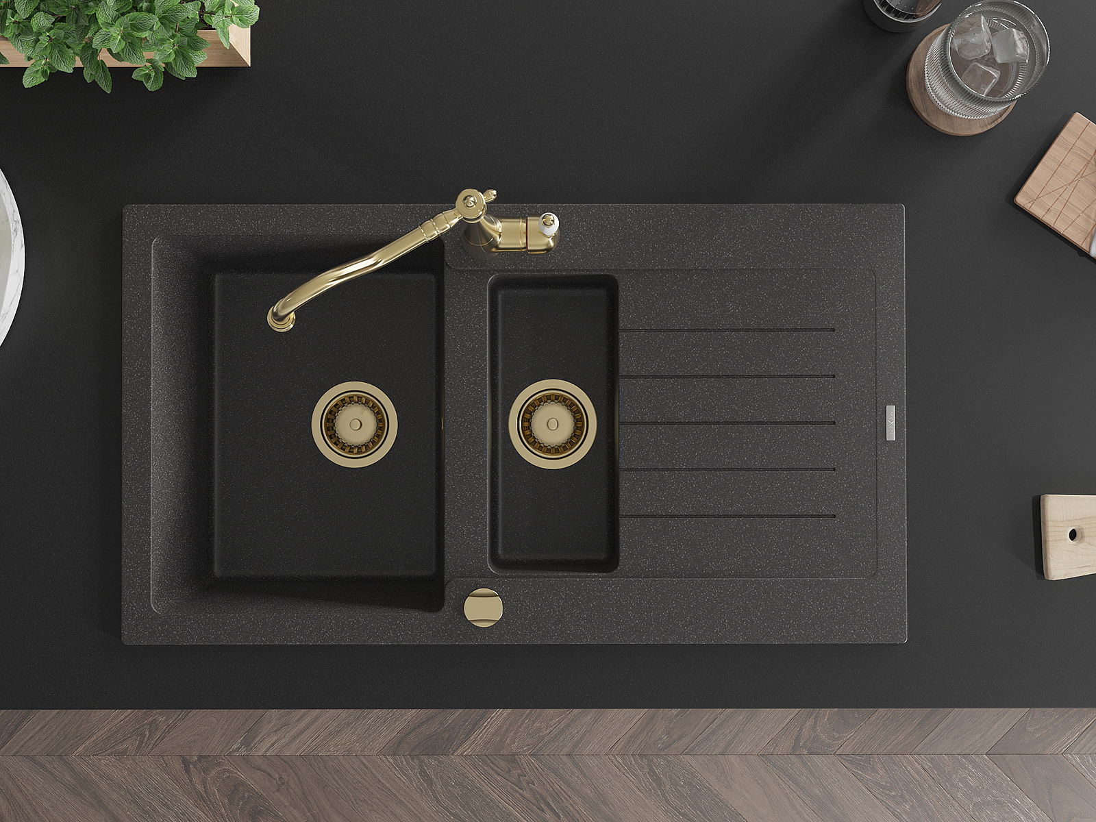 A mosogató magas minőségű gránitból készült. Elegáns, de mindenekelőtt praktikus kiegészítője minden konyhának, függetlenül annak stílusától. A gránit magas minősége és tartóssága hosszú távú használatot biztosít.
