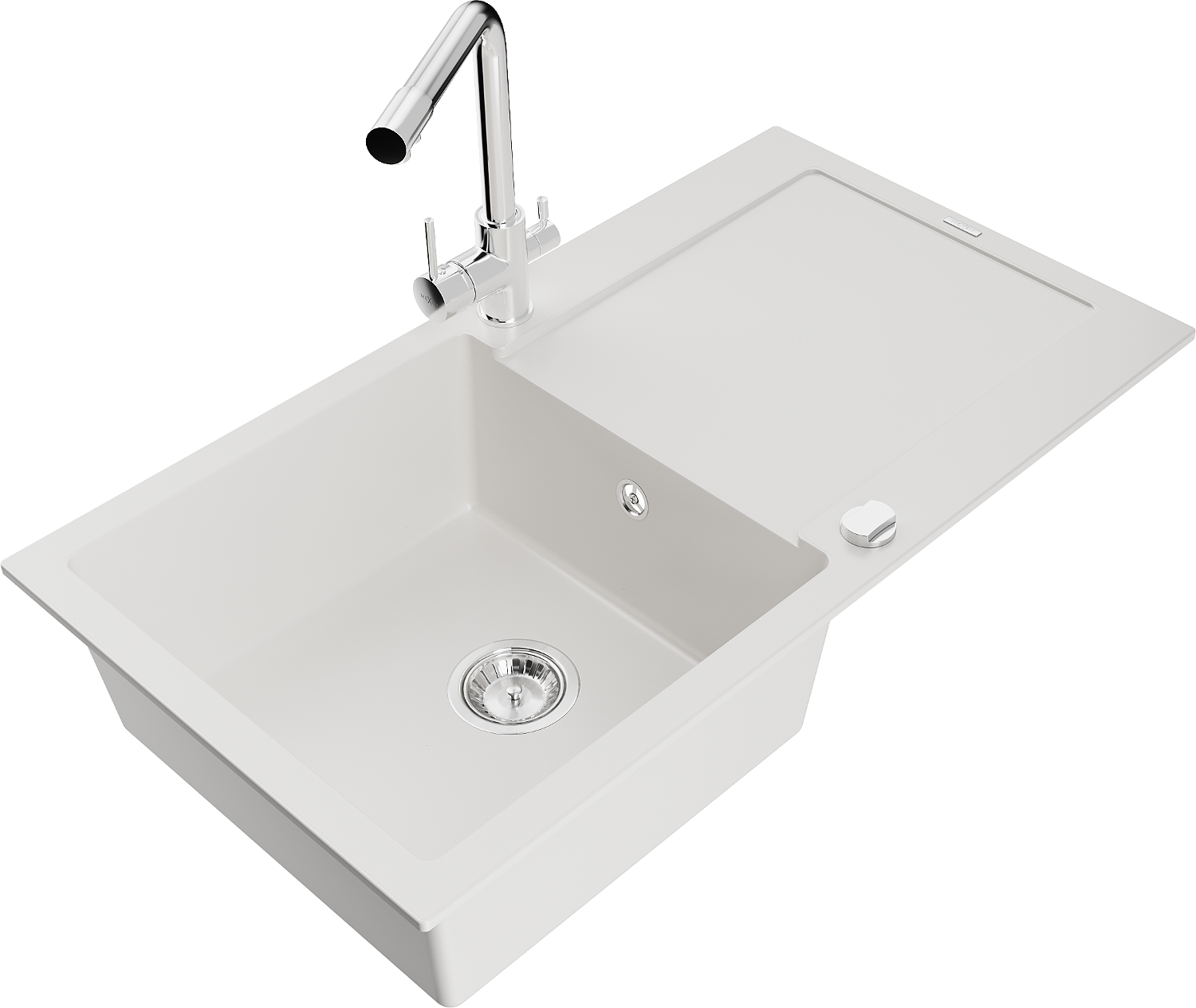 Mexen Leo egymedencés gránit mosogató csepegtetővel és Duero konyhai csapteleppel, fehér - 6501-20-671600-00