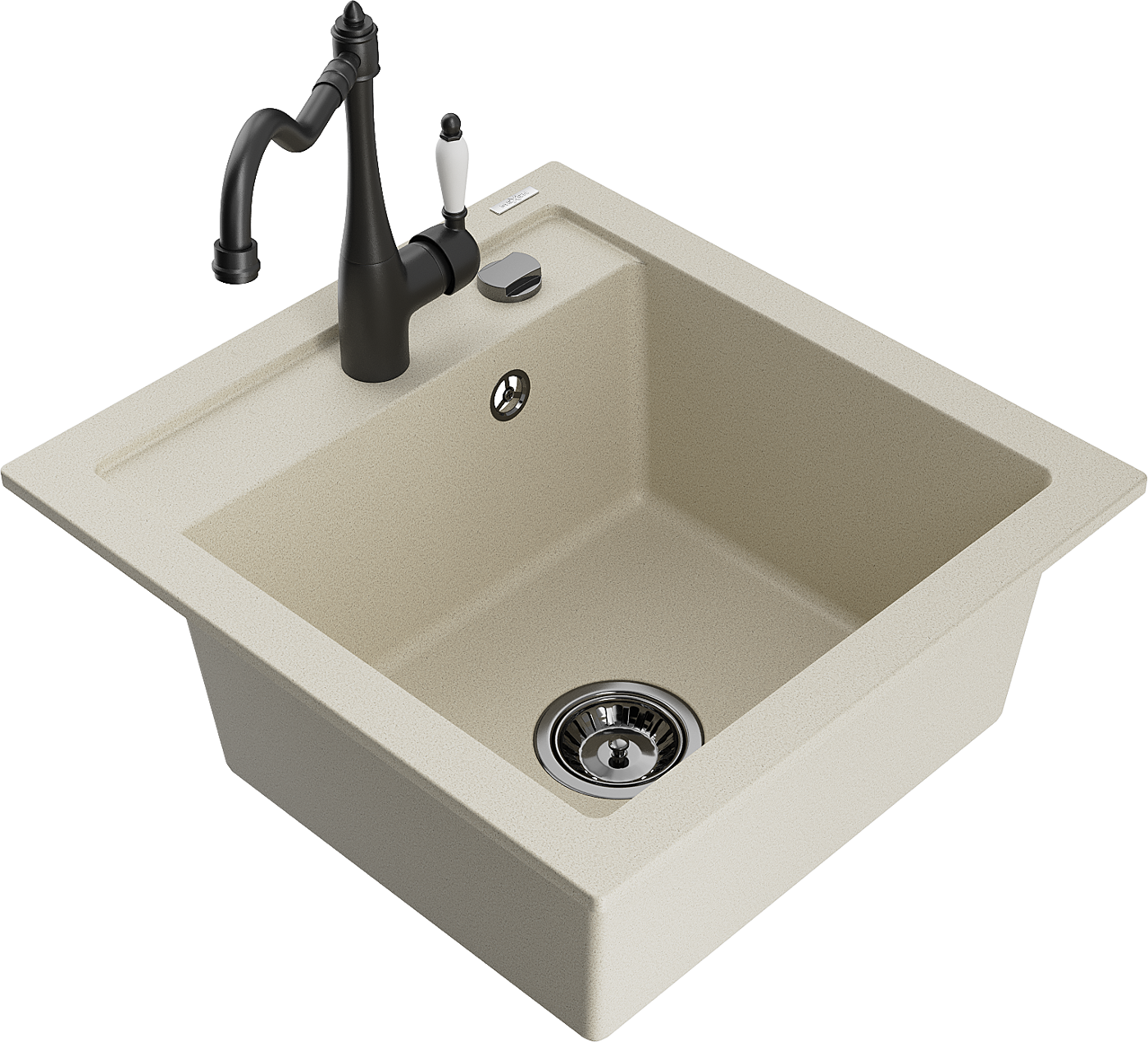 A mosogató kiváló minőségű gránitból készül. Ez egy elegáns és mindenekelőtt minden konyhához praktikus kiegészítés, stílusától függetlenül. A kiváló minőségű és a gránit tartósság biztosítja a sok éves használatát.