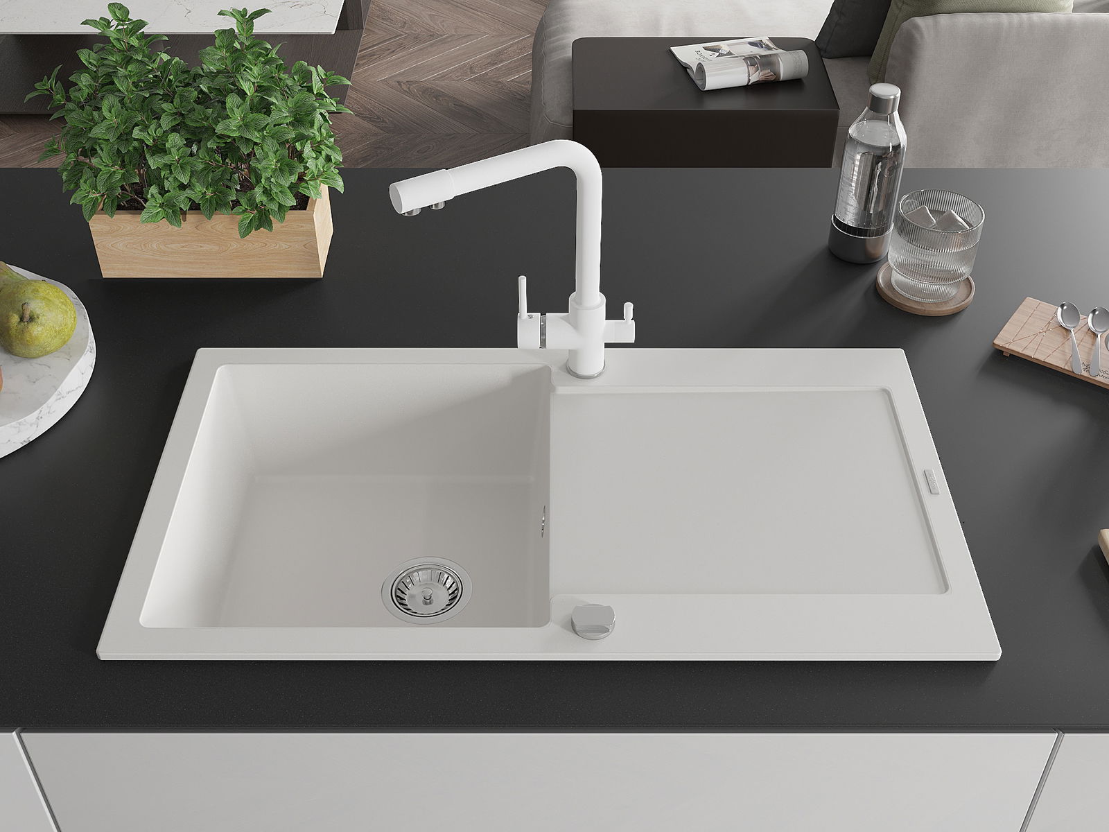 A mosogató felülete ellenáll a foltoknak és a elszíneződésnek, amelynek köszönhetően könnyű megtisztítani és hosszú ideig megtartja színét. Esztétikai és gyakorlatilag kiegészítve minden konyhát.