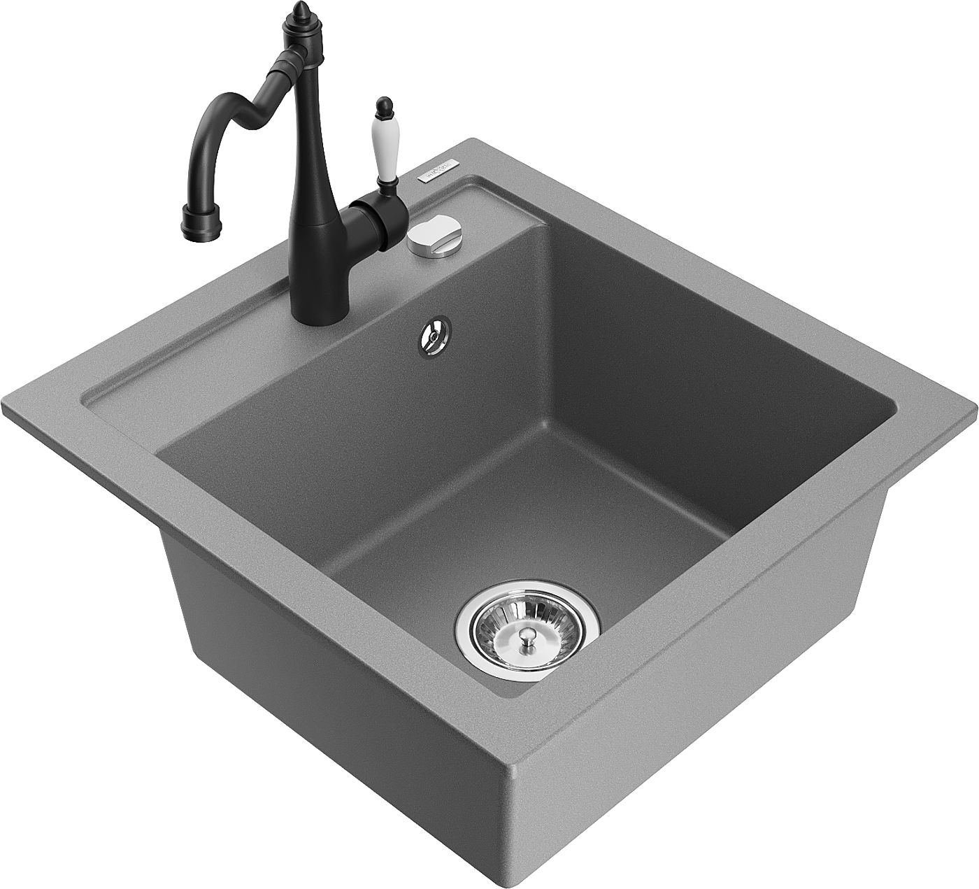 A mosogató kiváló minőségű gránitból készül. Ez egy elegáns és mindenekelőtt minden konyhához praktikus kiegészítés, stílusától függetlenül. A kiváló minőségű és a gránit tartósság biztosítja a sok éves használatát.