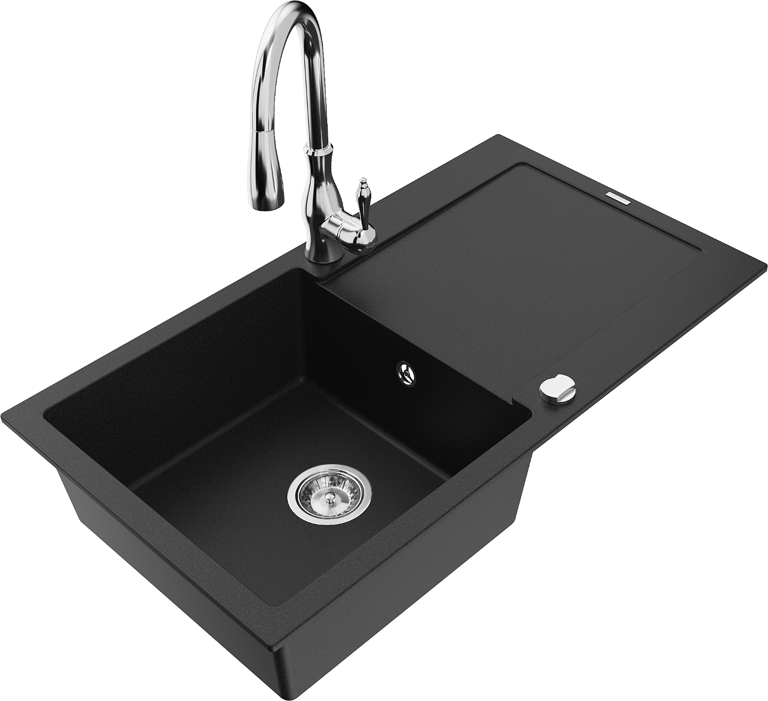 Mexen Leo 1 rekeszes gránit mosogató csepegtetővel és Savita konyhai csappal, fekete - 6501-77-672601-00