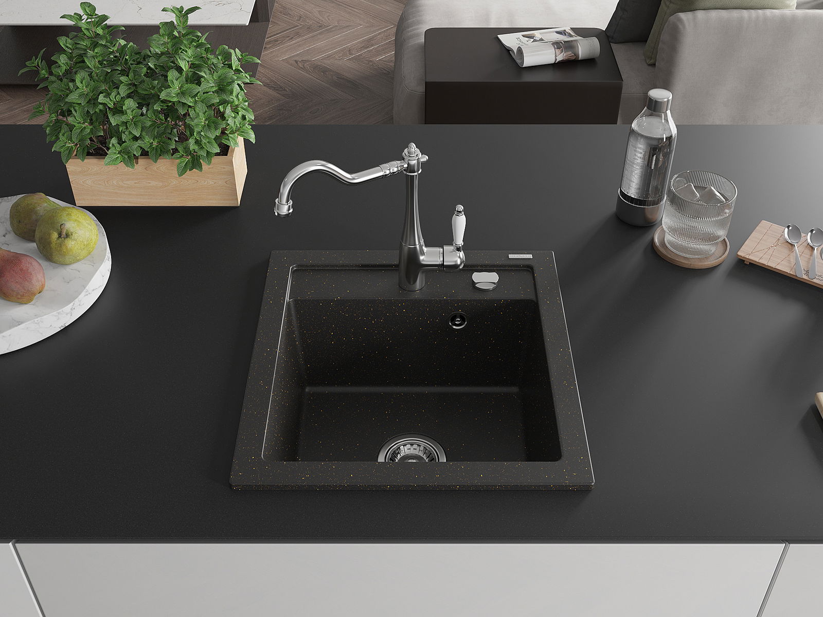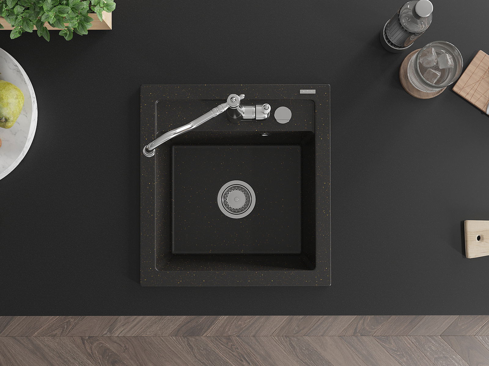 A mosogató kiváló minőségű gránitból készül. Ez egy elegáns és mindenekelőtt minden konyhához praktikus kiegészítés, stílusától függetlenül. A kiváló minőségű és a gránit tartósság biztosítja a sok éves használatát.