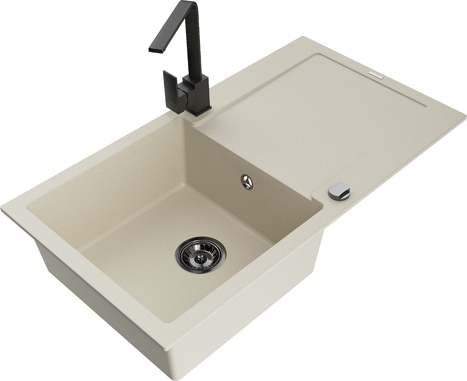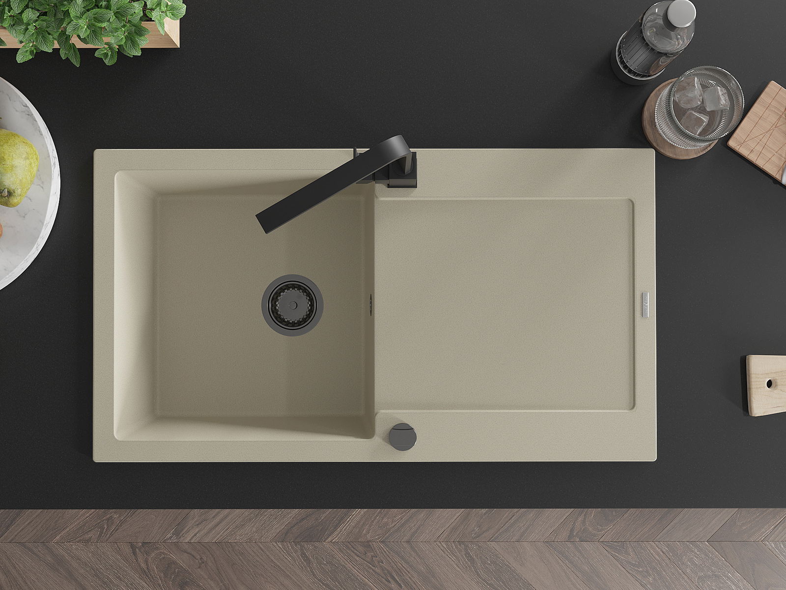 A mosogató magas minőségű gránitból készült. Elegáns, de mindenekelőtt praktikus kiegészítője minden konyhának, függetlenül annak stílusától. A gránit magas minősége és tartóssága hosszú távú használatot biztosít.