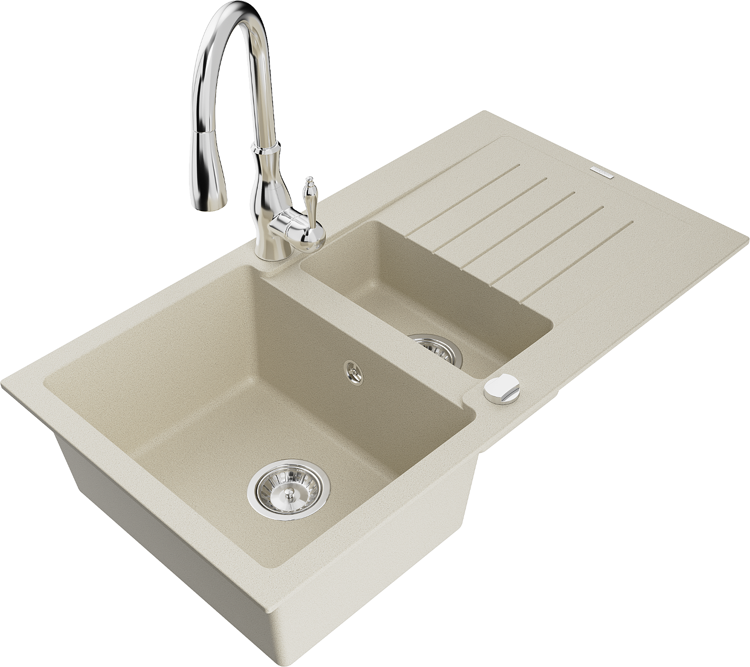 Mexen Matias gránit mosogató 1,5 kamrás csepegtetővel és Savita konyhai csapteleppel, bézs - 6502-69-672601-00