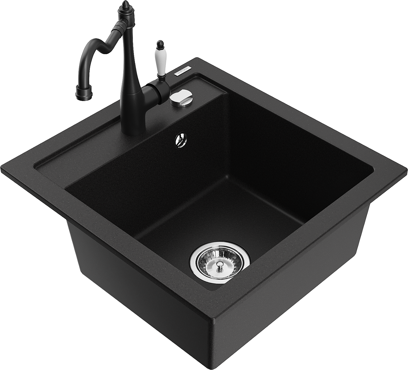 Mexen Vito egymedencés gránit mosogató Carla konyhai csappal, fekete - 6503-77-670700-70