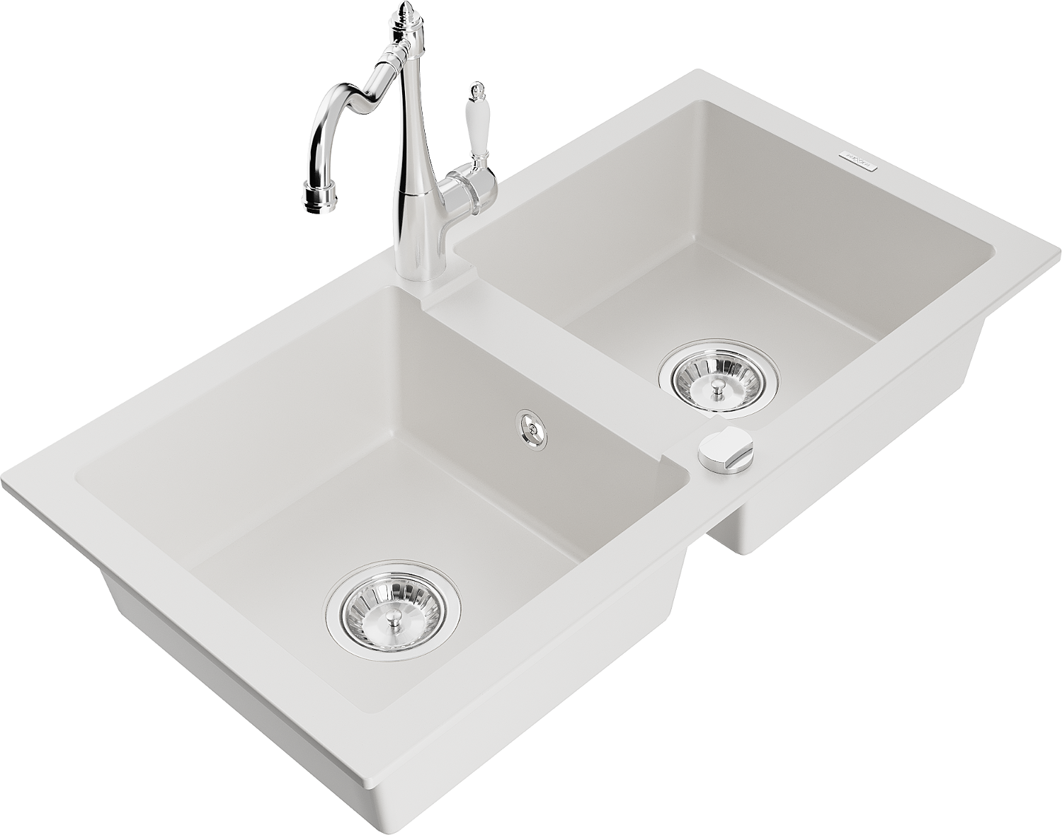 Mexen Mario 2 rekeszes gránit mosogató Carla konyhai csappal, fehér - 6504-20-670700-00