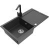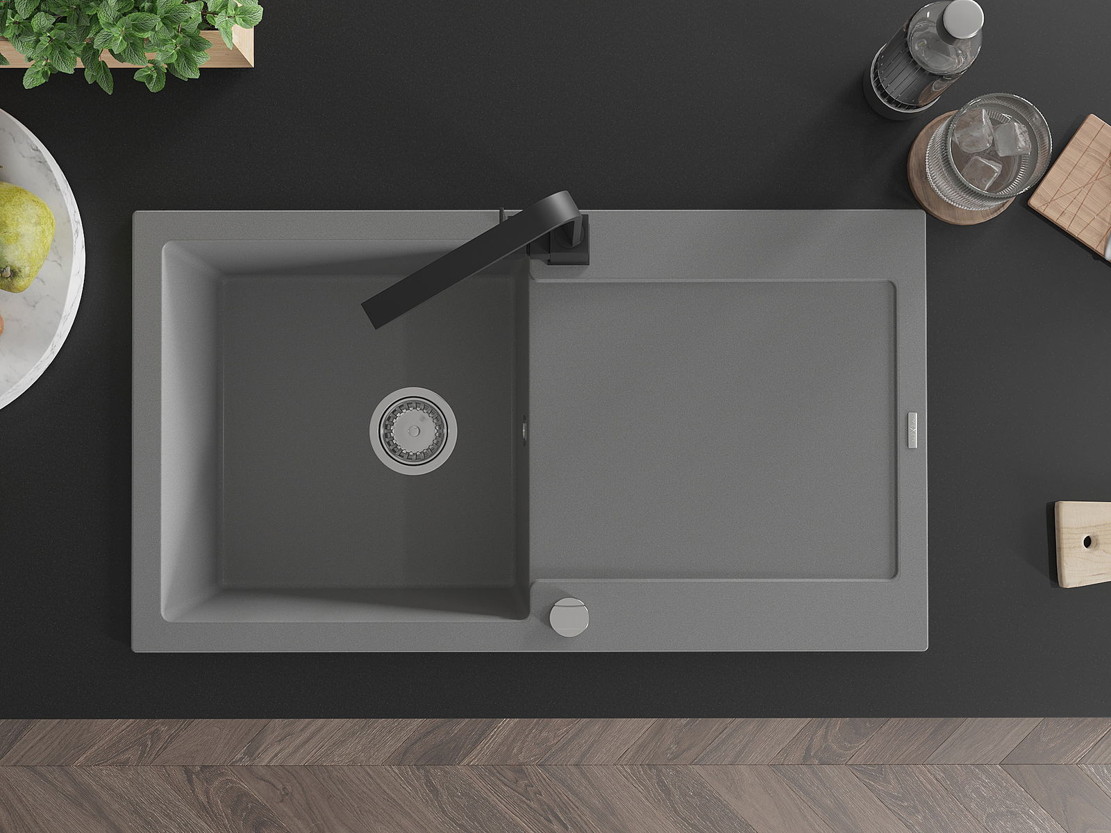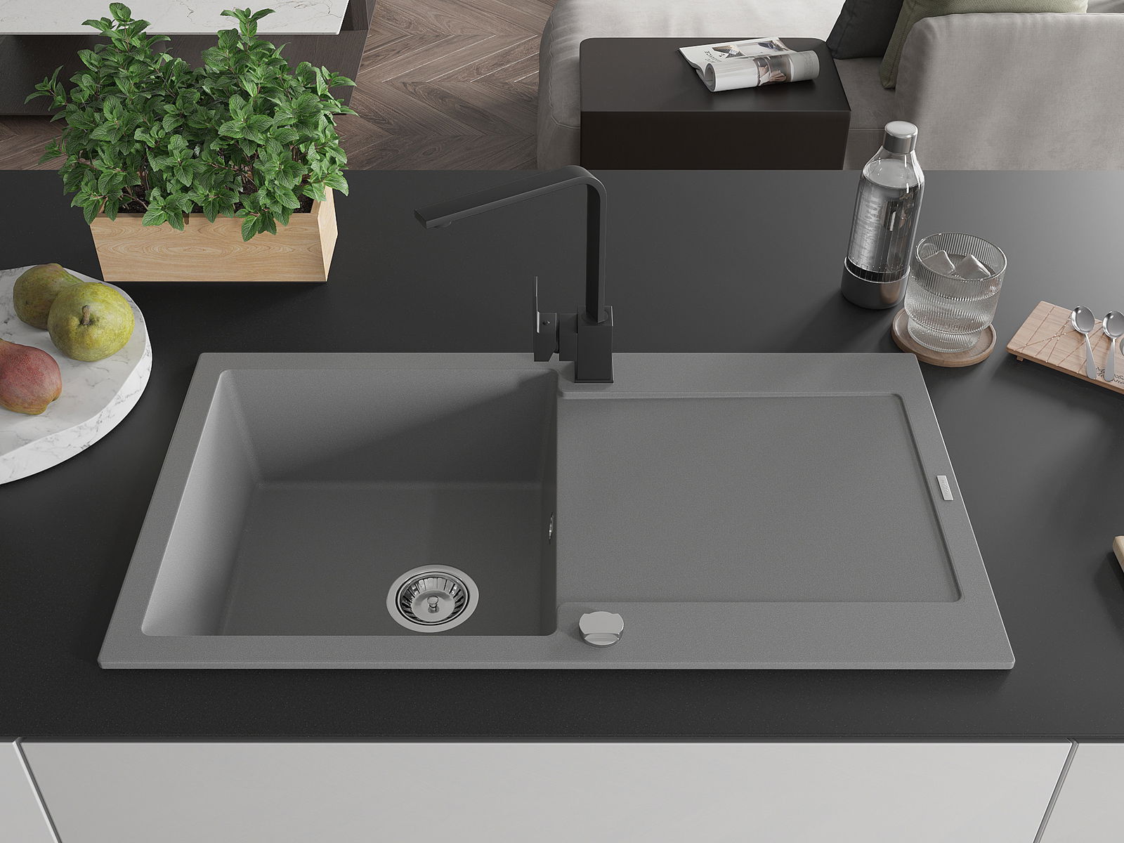 Mexen Leo egykamrás gránit mosogató csöpögtetővel és Rita konyhai csappal, szürke - 6501-71-670300-70