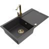 Mexen Leo 1-medencés gránit mosogató tálca és Rita konyhai csaptelep, fekete/ezüst metál - 6501-73-670300-50