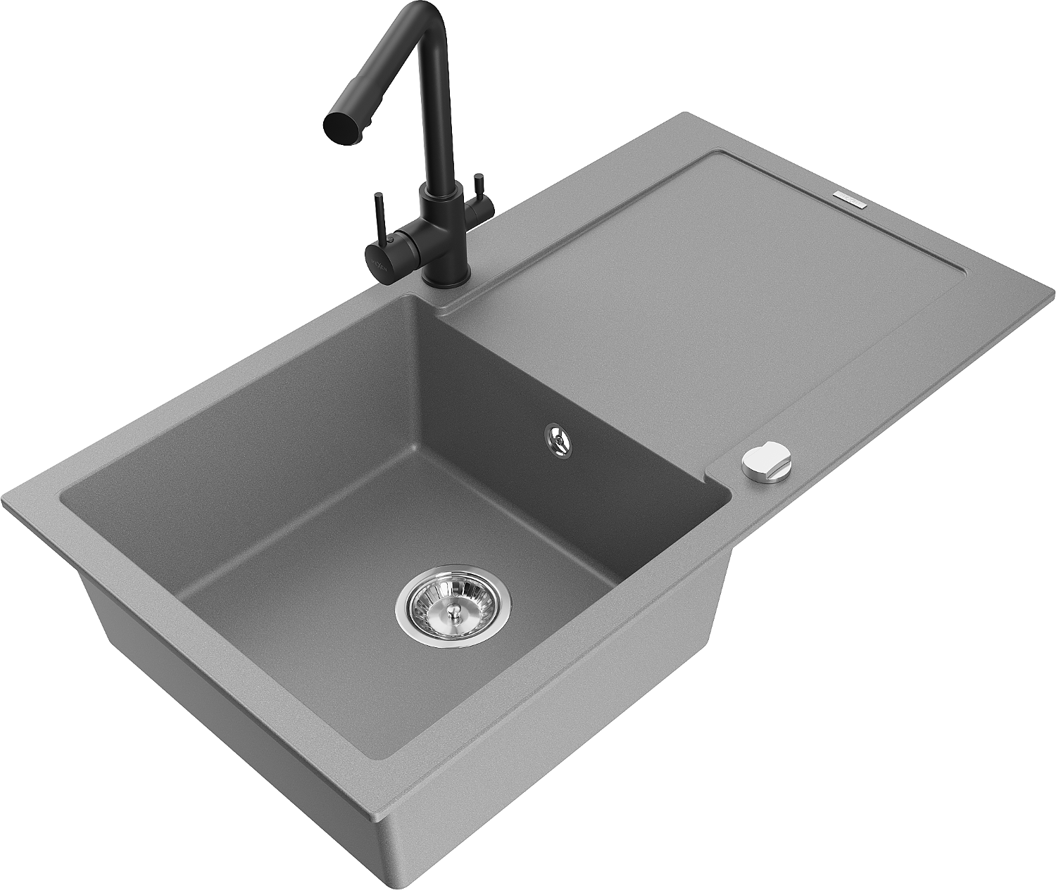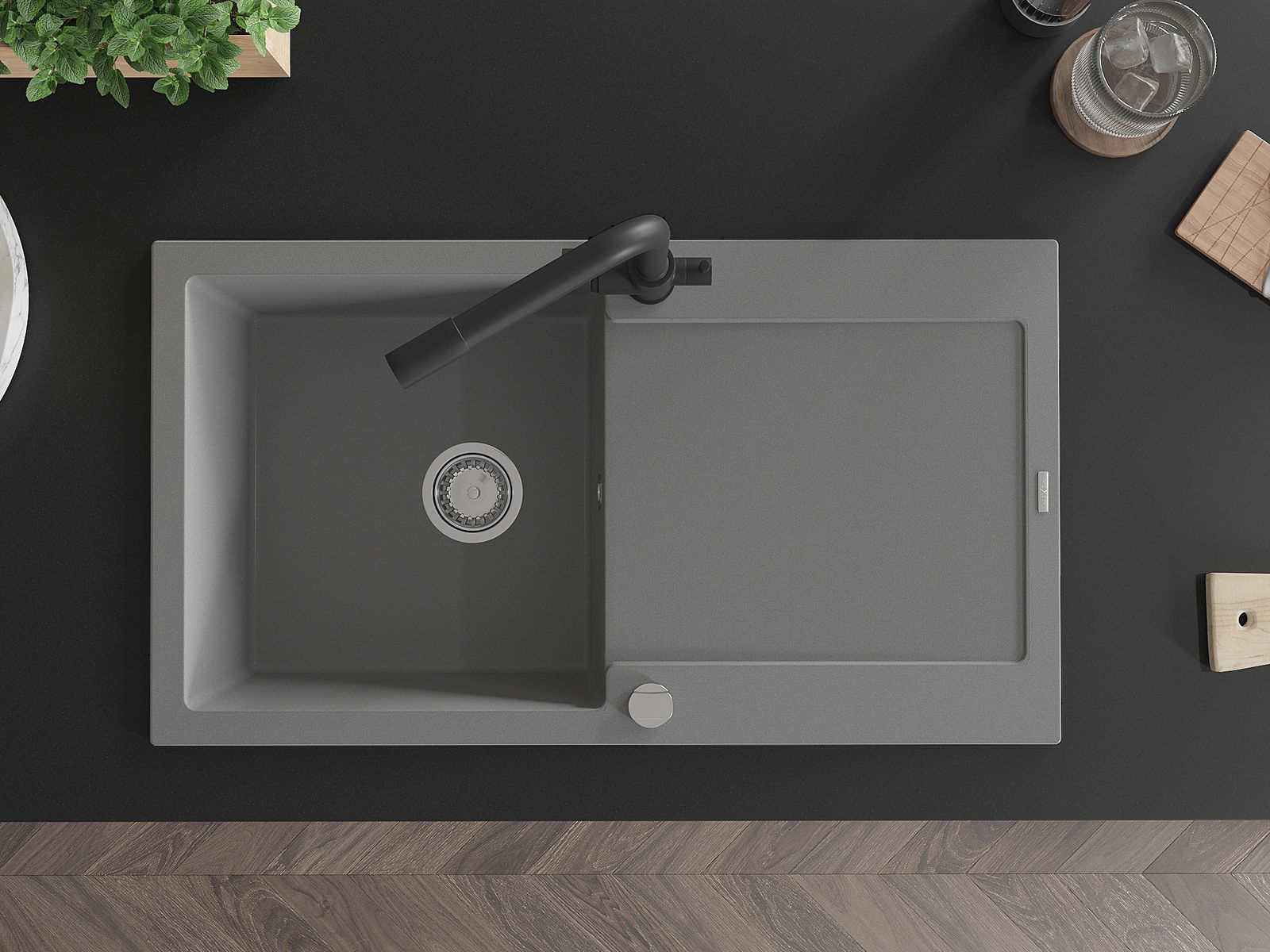 Mexen Leo egymedencés gránit mosogató csepegtetőtálcával és Duero konyhai csapteleppel, szürke - 6501-71-671600-70