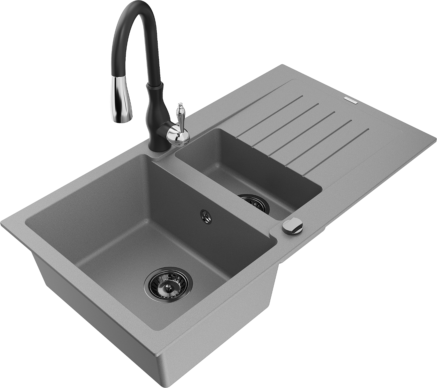 Mexen Matias 1,5 medencés gránit mosogató csepptálcával és Savita konyhai csapteleppel, szürke - 6502-71-672601-70-B