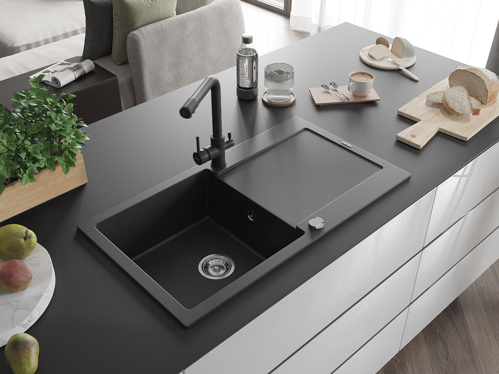 A mosogató kiváló minőségű gránitból készül. Ez egy elegáns és mindenekelőtt minden konyhához praktikus kiegészítés, stílusától függetlenül. A kiváló minőségű és a gránit tartósság biztosítja a sok éves használatát.