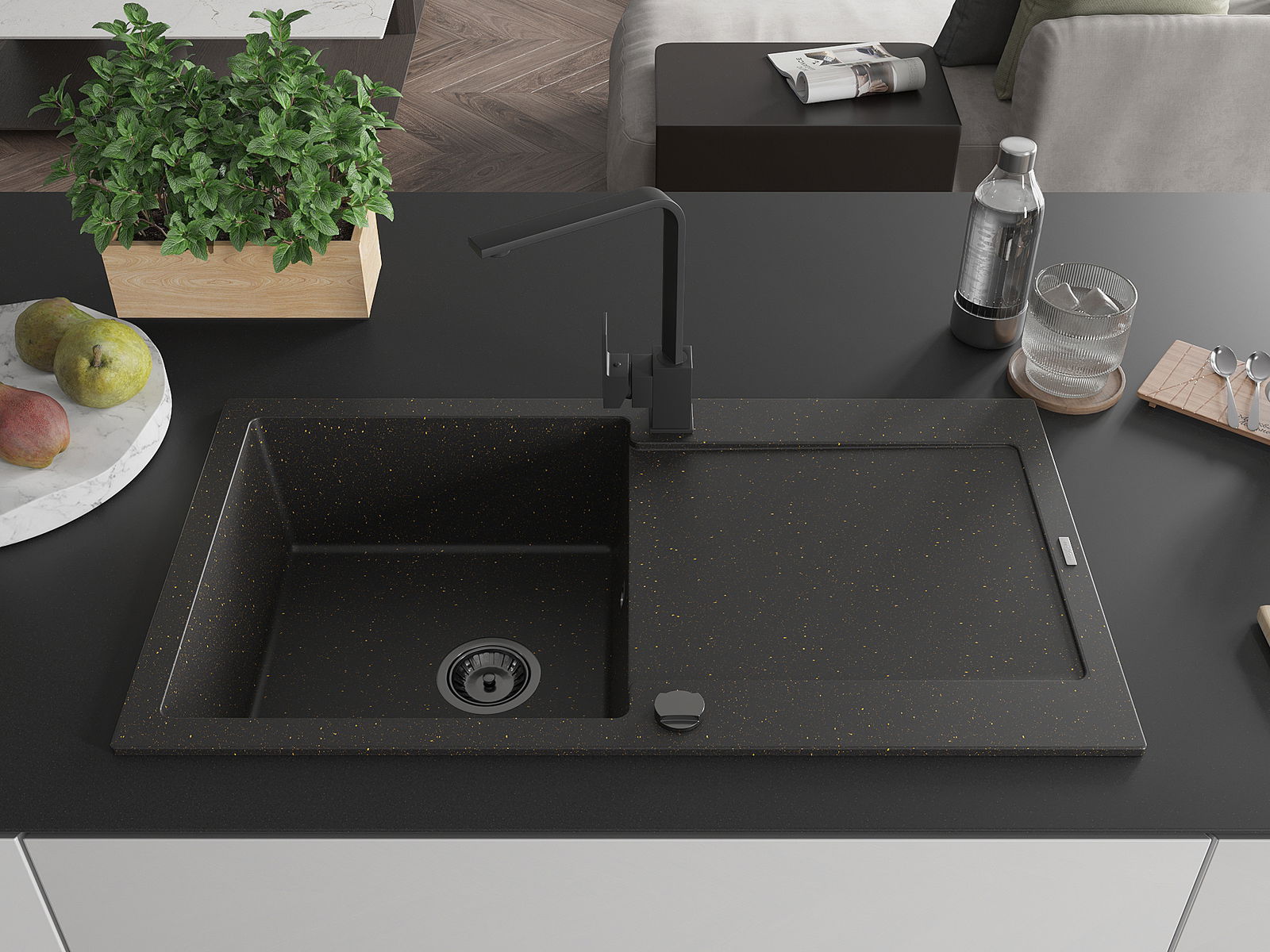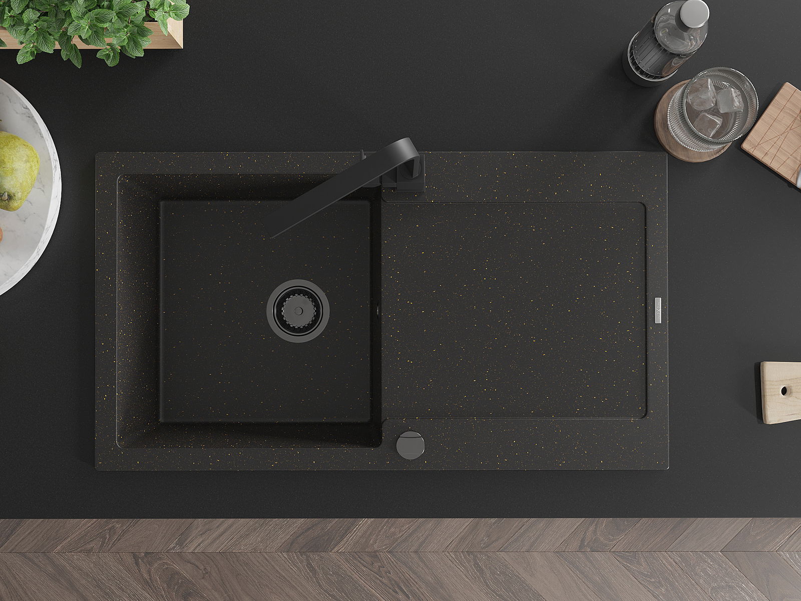 A mosogató magas minőségű gránitból készült. Elegáns, de mindenekelőtt praktikus kiegészítője minden konyhának, függetlenül annak stílusától. A gránit magas minősége és tartóssága hosszú távú használatot biztosít.
