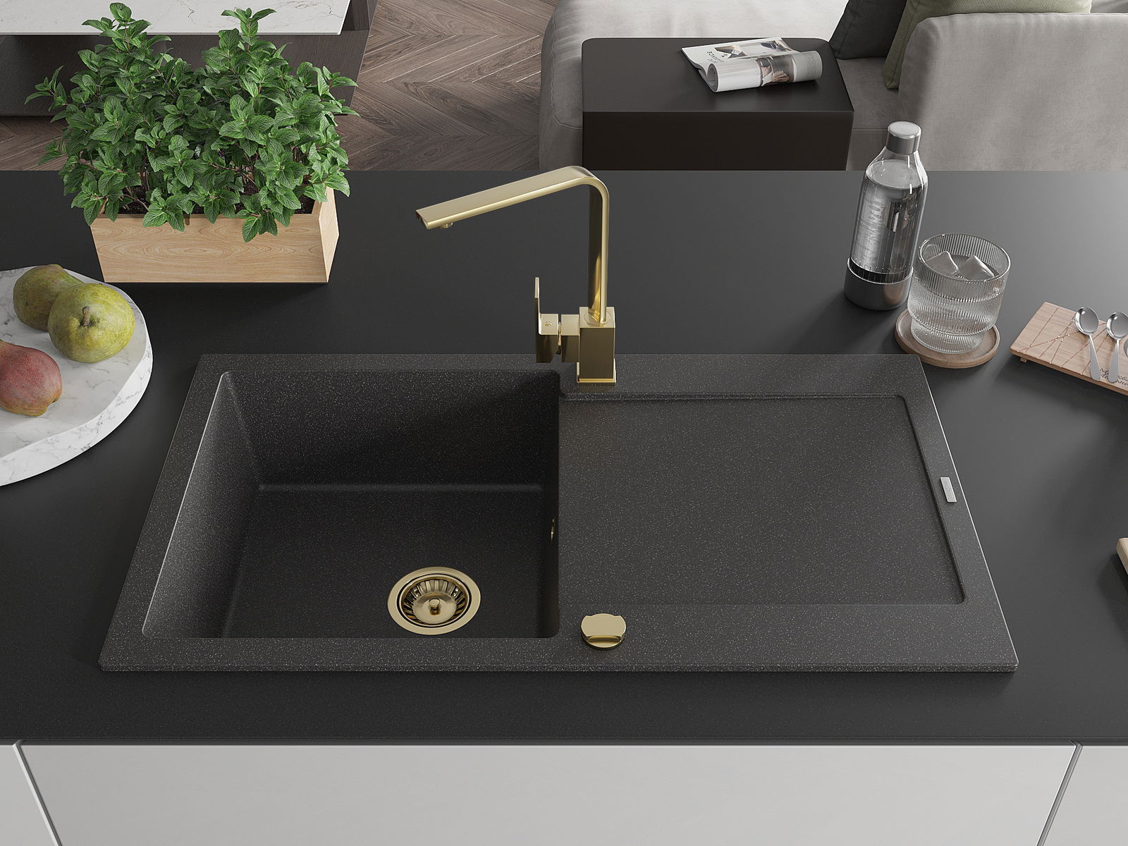 A mosogató kiváló minőségű gránitból készül. Ez egy elegáns és mindenekelőtt minden konyhához praktikus kiegészítés, stílusától függetlenül. A kiváló minőségű és a gránit tartósság biztosítja a sok éves használatát.