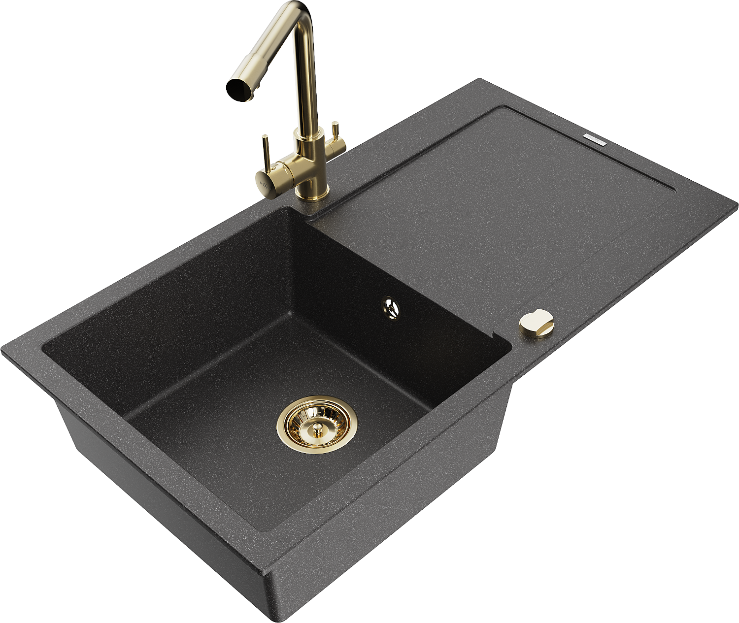 A mosogató kiváló minőségű gránitból készül. Ez egy elegáns és mindenekelőtt minden konyhához praktikus kiegészítés, stílusától függetlenül. A kiváló minőségű és a gránit tartósság biztosítja a sok éves használatát.