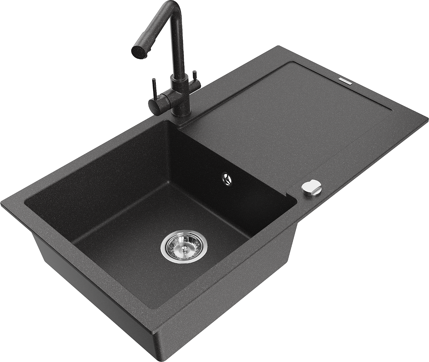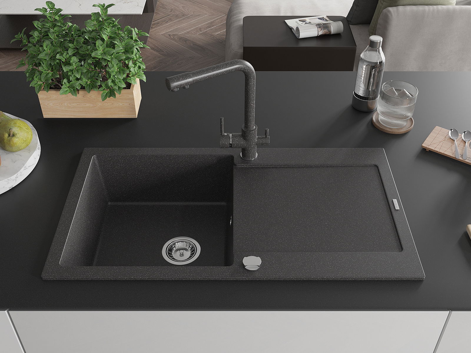 A mosogató kiváló minőségű gránitból készül. Ez egy elegáns és mindenekelőtt minden konyhához praktikus kiegészítés, stílusától függetlenül. A kiváló minőségű és a gránit tartósság biztosítja a sok éves használatát.