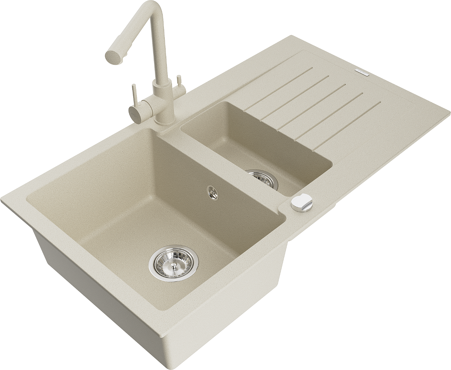 Mexen Matias gránit mosogató 1,5 rekeszes csepegtetővel és Duero konyhai csappal, bézs - 6502-69-671600-69