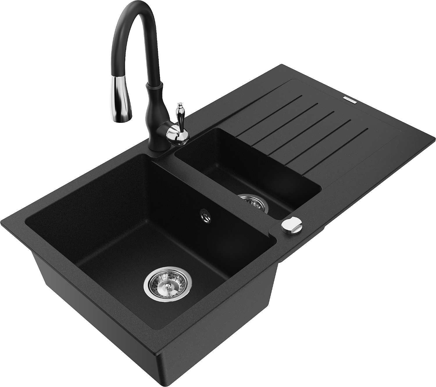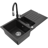 Mexen Matias gránit mosogató 1,5 kamrás csepegtetővel és Savita konyhai csapteleppel, fekete - 6502-77-672601-70
