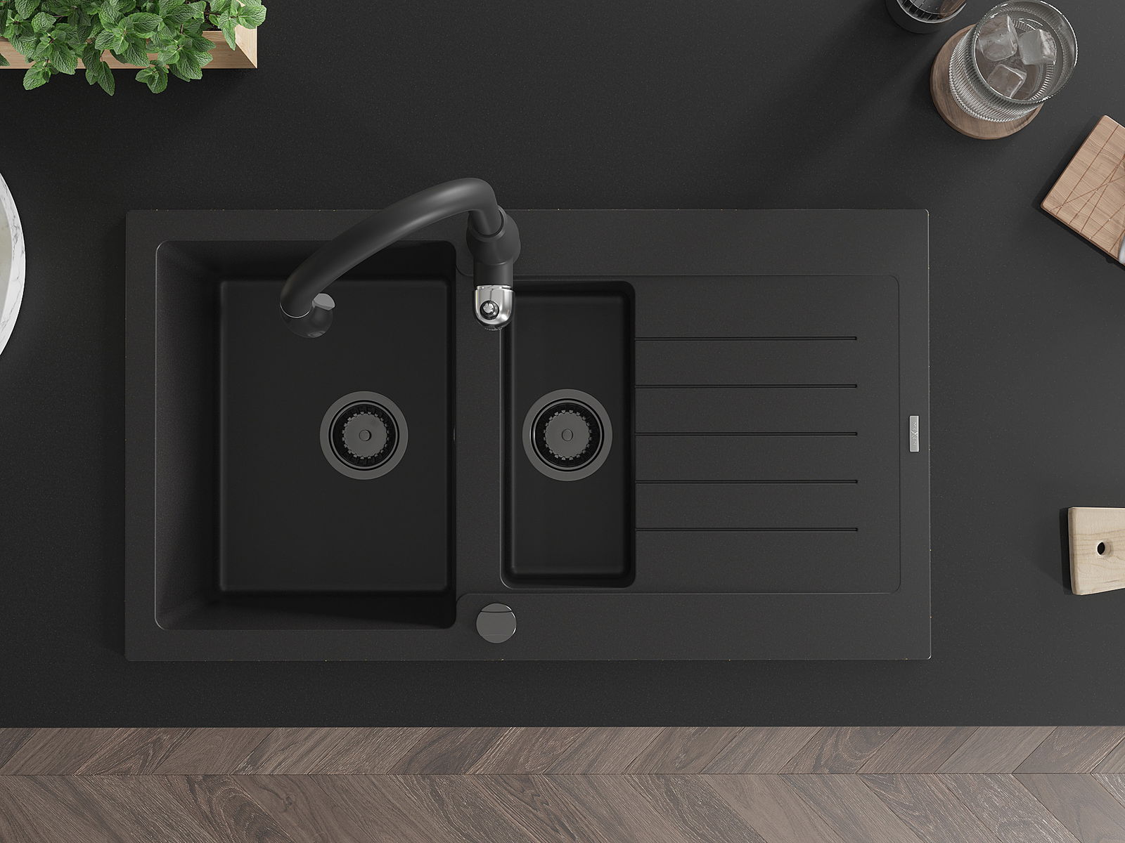 A mosogató kiváló minőségű gránitból készül. Ez egy elegáns és mindenekelőtt minden konyhához praktikus kiegészítés, stílusától függetlenül. A kiváló minőségű és a gránit tartósság biztosítja a sok éves használatát.