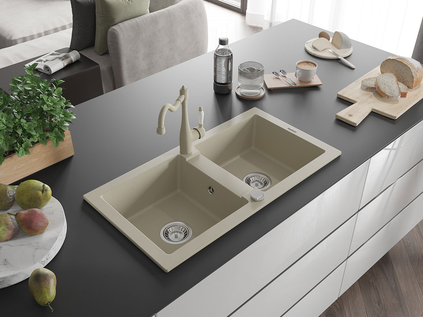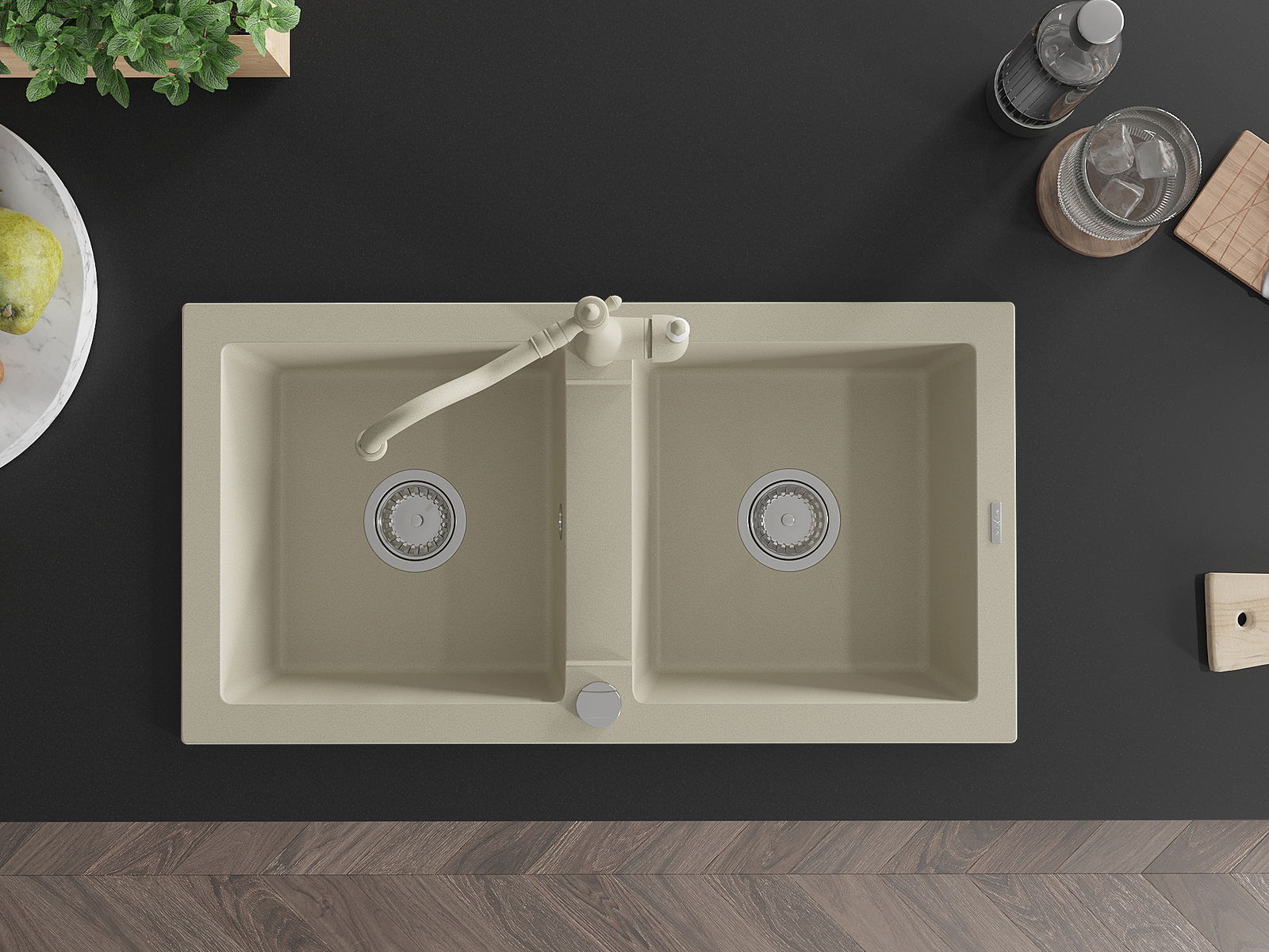 A mosogató felülete ellenáll a foltoknak és a elszíneződésnek, amelynek köszönhetően könnyű megtisztítani és hosszú ideig megtartja színét. Esztétikai és gyakorlatilag kiegészítve minden konyhát.